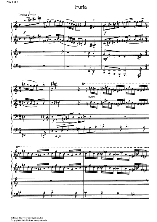 Digital Sheet Music for Furia by Giulio Viozzi scored for 1 Piano, 4 Hands; id:334826
