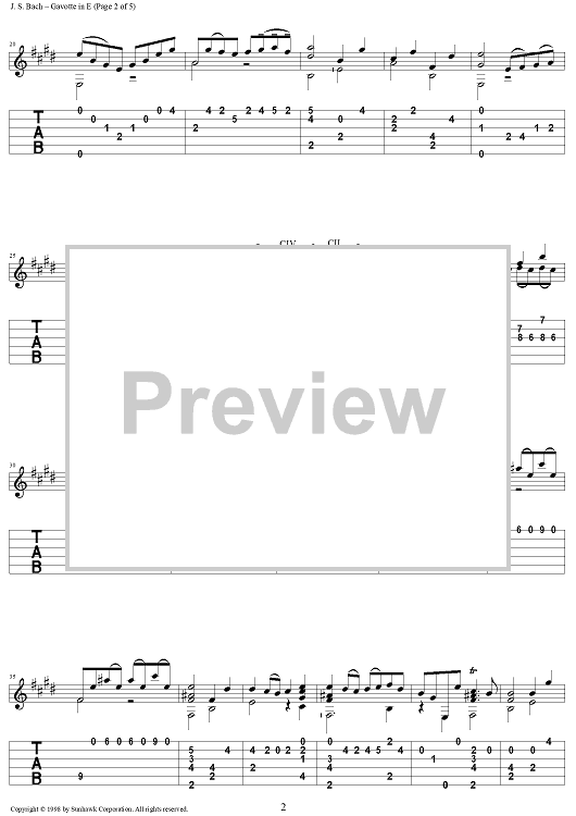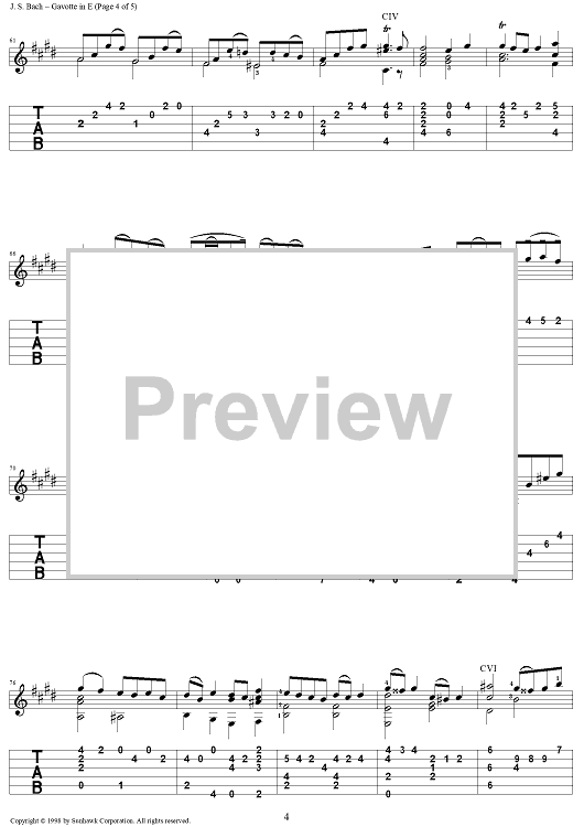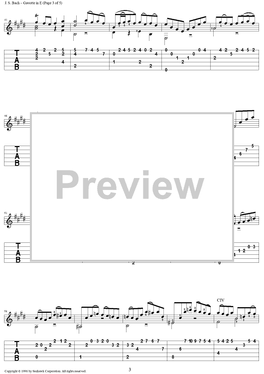 "Gavotte in E - Guitar Tab" Sheet Music by Johann Sebastian Bach