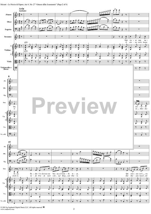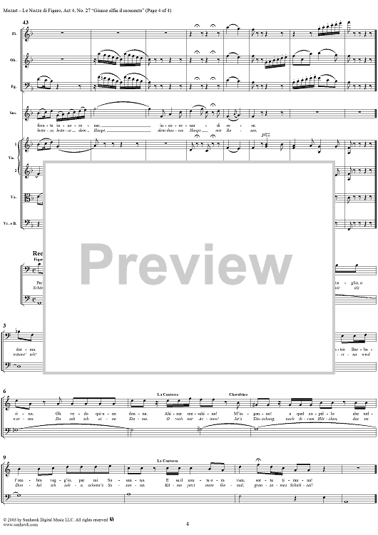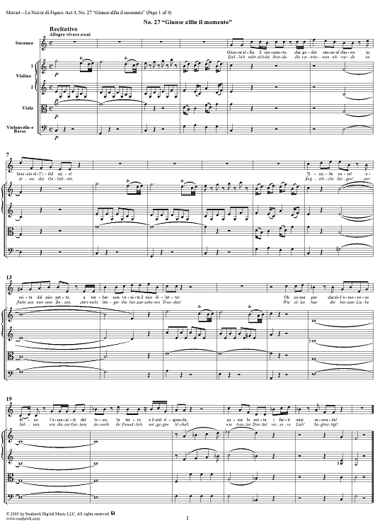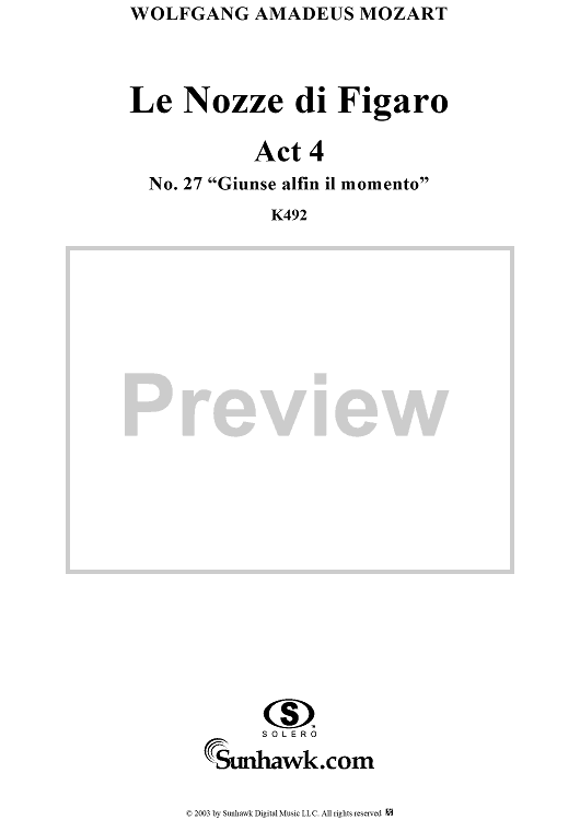 Digital Sheet Music for "Giunse alfin il momento", No. 27 from "Le Nozze di Figaro", Act 4, K492 - Full Score by Wolfgang Amadeus Mozart scored for Voice and Orchestra; id:292224