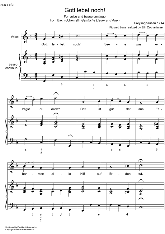 Digital Sheet Music for Gott lebet noch! by Johann Anastasius Freylinghausen, Eilif Zachariassen scored for Voice/Continuo; id:325932