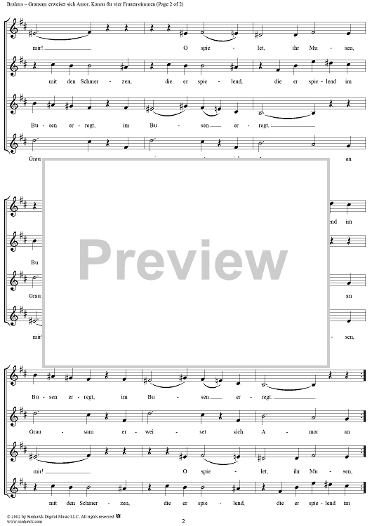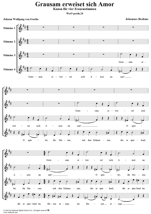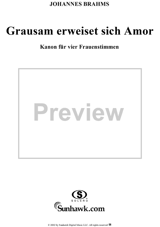 Digital Sheet Music for Grausam erweiset sich Amor, WoO posth. 24 by , Johannes Brahms scored for Four Female Voices; id:273772