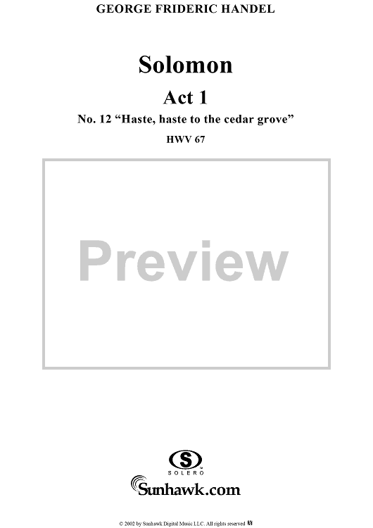 Digital Sheet Music for Haste, haste to the cedar grove, No. 12 from Oratorio "Solomon", Act 1 (HWV67) by George Frideric Handel scored for Soli/SATB/Orchestra; id:290377