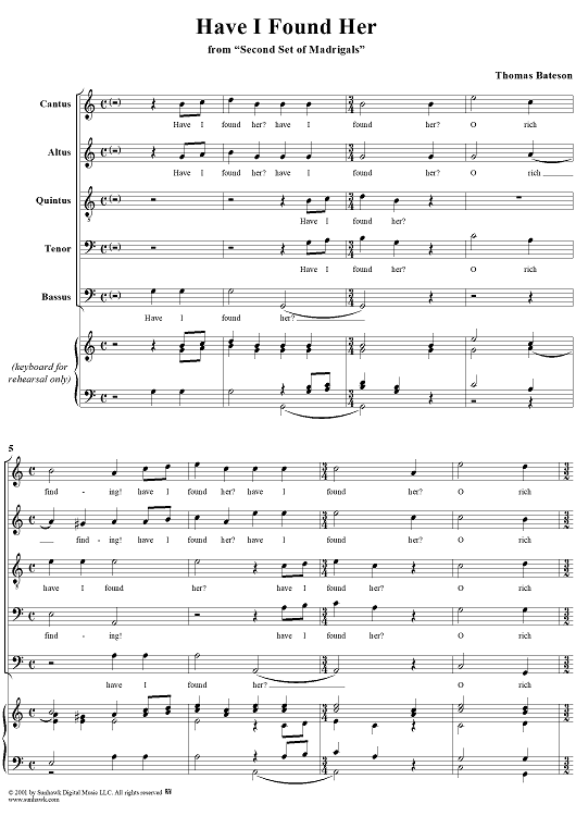Digital Sheet Music for Have I Found Her by Thomas Bateson scored for Mixed Chorus; id:259561