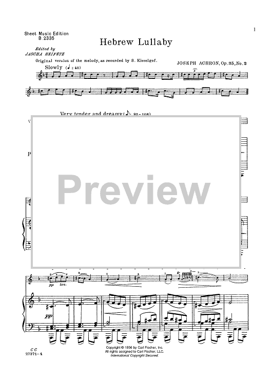 "Hebrew Lullaby (Op. 35, No. 2)" Sheet Music by Joseph Achron