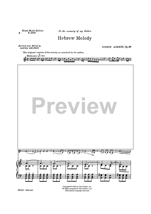 "Hebrew Melody (Op. 33)" Sheet Music by Joseph Achron