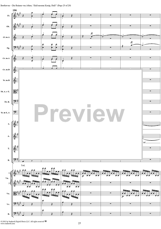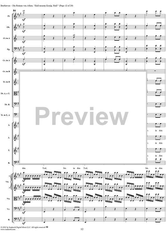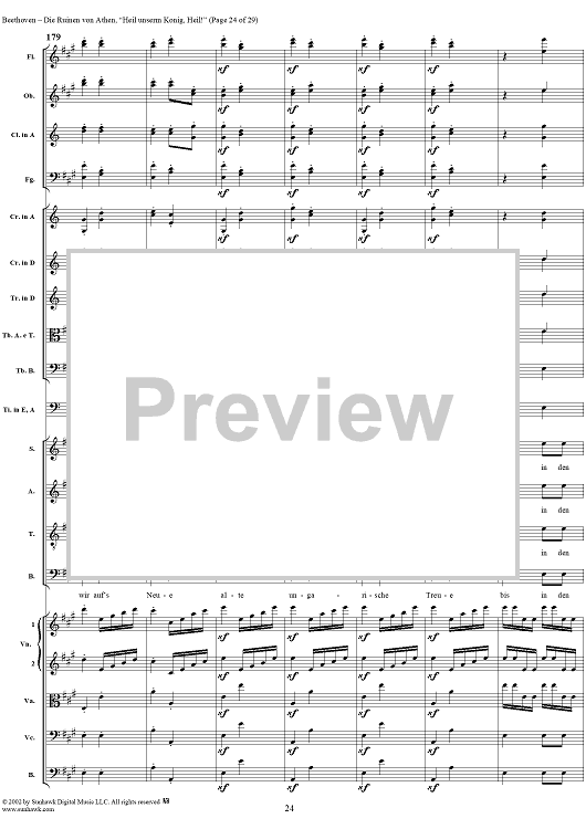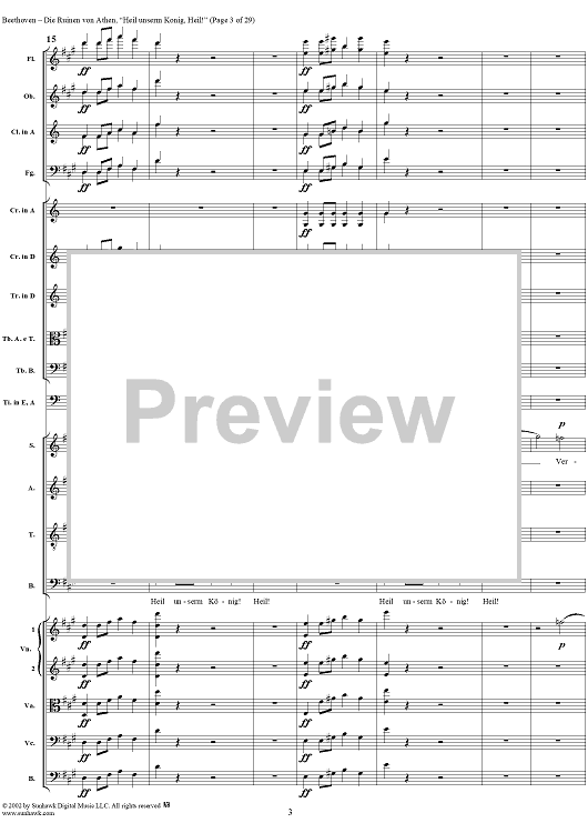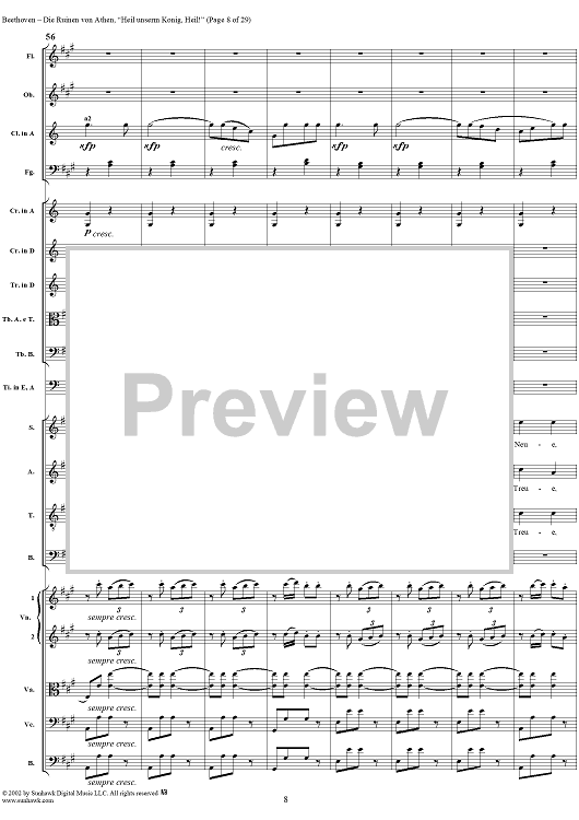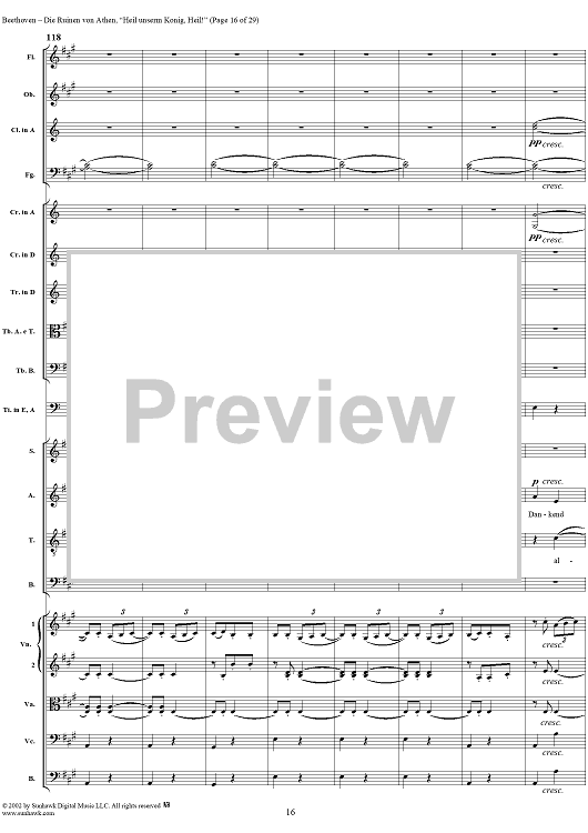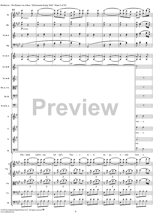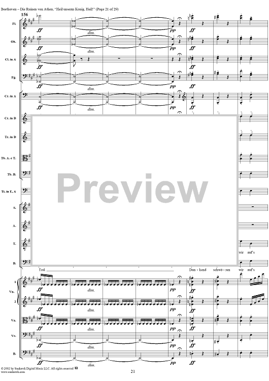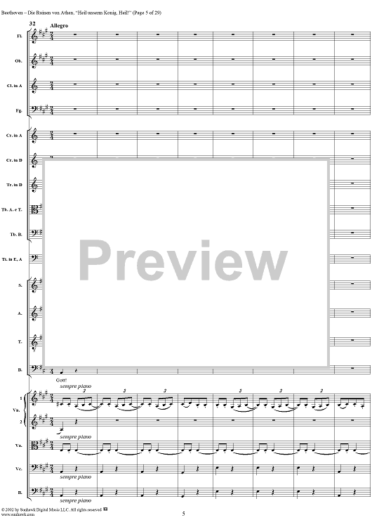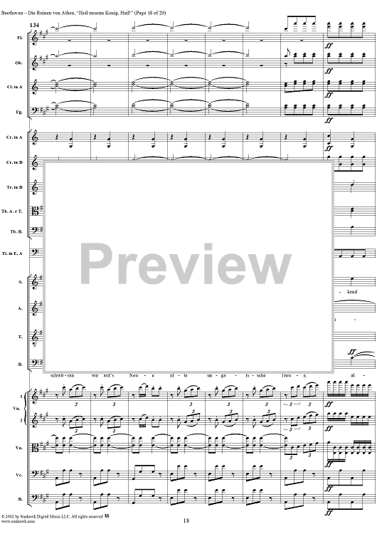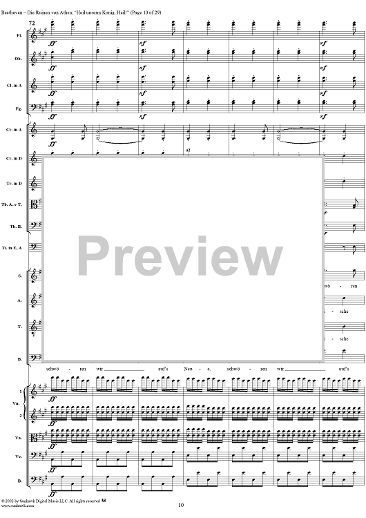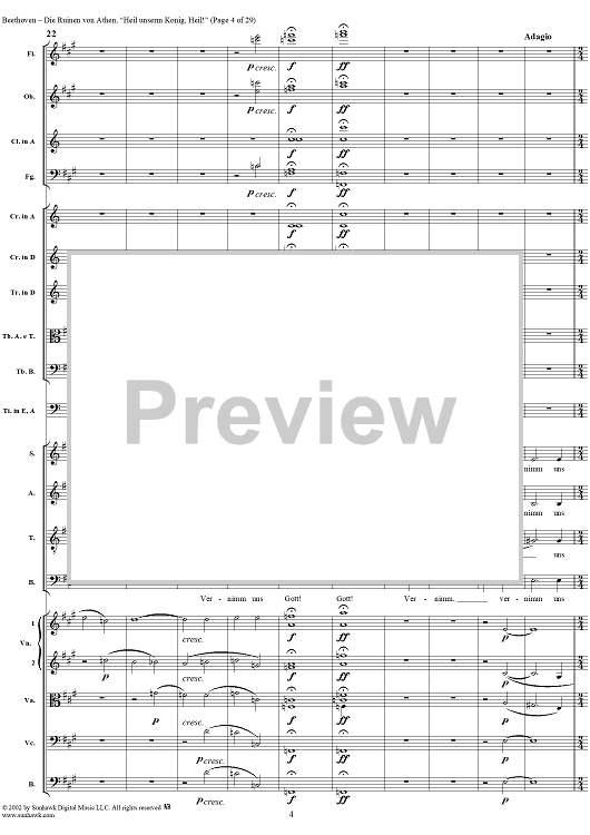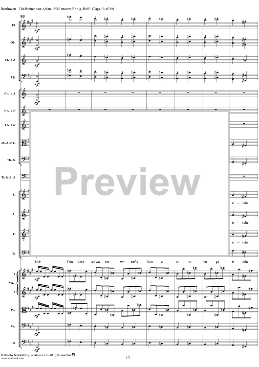 Digital Sheet Music for Heil unserm König, Heil!, No. 8 from "Die Ruinen von Athen", Op. 113 - Full Score by Ludwig van Beethoven scored for Chorus and Orchestra; id:290905