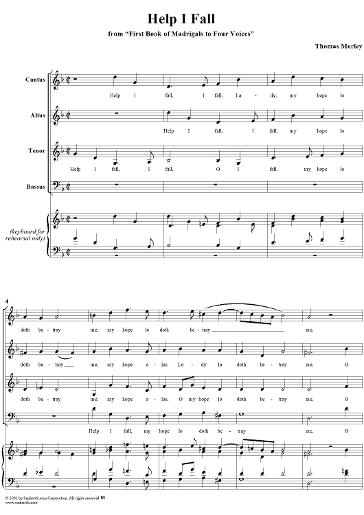 Digital Sheet Music for Help I Fall by Thomas Morley scored for Four-part Mixed Chorus; id:260162