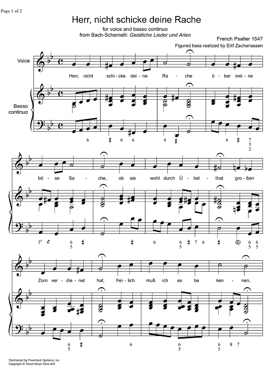 Digital Sheet Music for Herr, nicht schicke deine Rache by Unknown Writer, Eilif Zachariassen scored for Voice/Continuo; id:325896