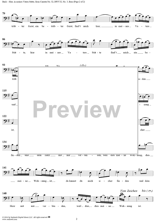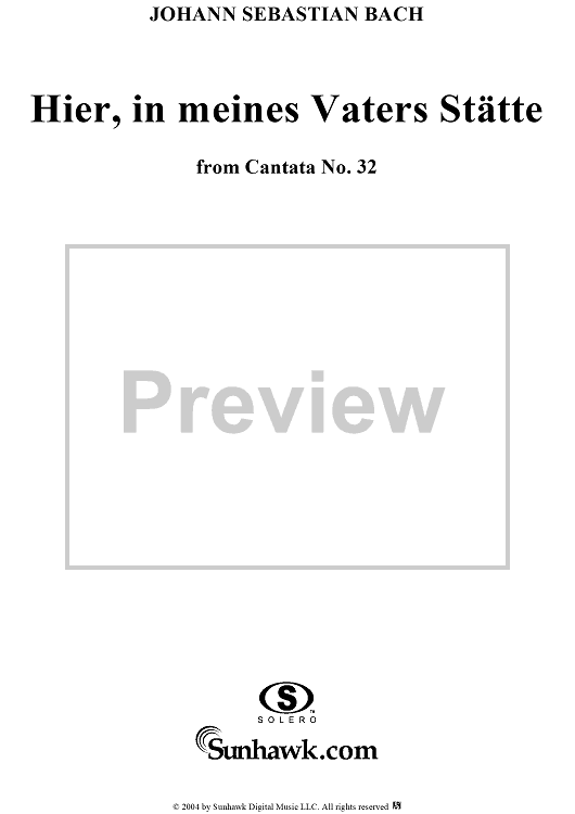 Digital Sheet Music for "Hier, in meines Vaters Stätte", Aria, No. 3 from Cantata No. 32: "Liebster Jesu, mein Verlangen" - Bass by Johann Sebastian Bach scored for Bass, Violin and Piano or Organ; id:303683