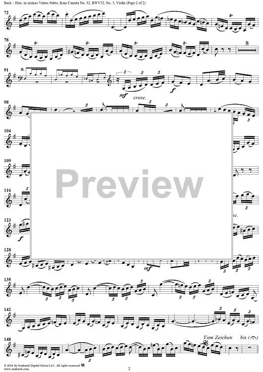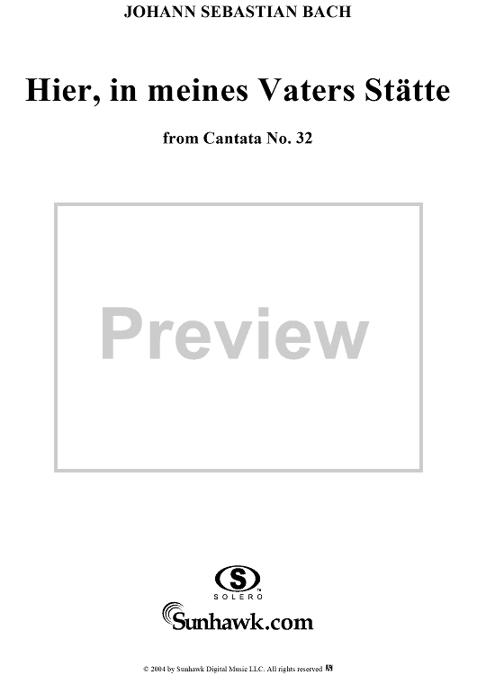 Digital Sheet Music for "Hier, in meines Vaters Stätte", Aria, No. 3 from Cantata No. 32: "Liebster Jesu, mein Verlangen" - Violin by Johann Sebastian Bach scored for Bass, Violin and Piano or Organ; id:303682