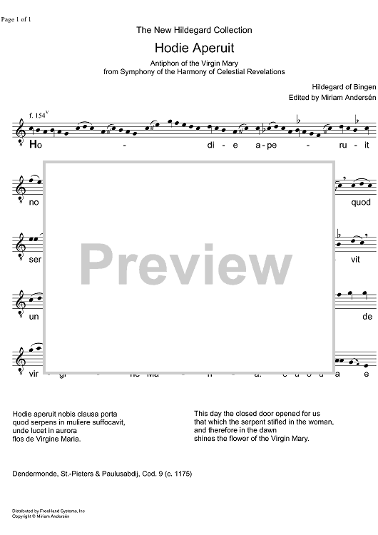 "Hodie Aperuit" Sheet Music by Hildegard von Bingen