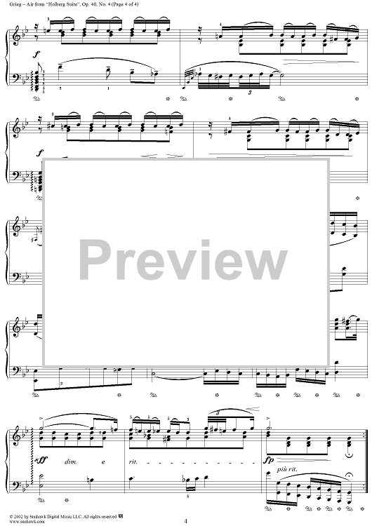 Digital Sheet Music for Holberg Suite, op. 40, no. 4: Air by Edvard Grieg scored for Piano Solo; id:267683
