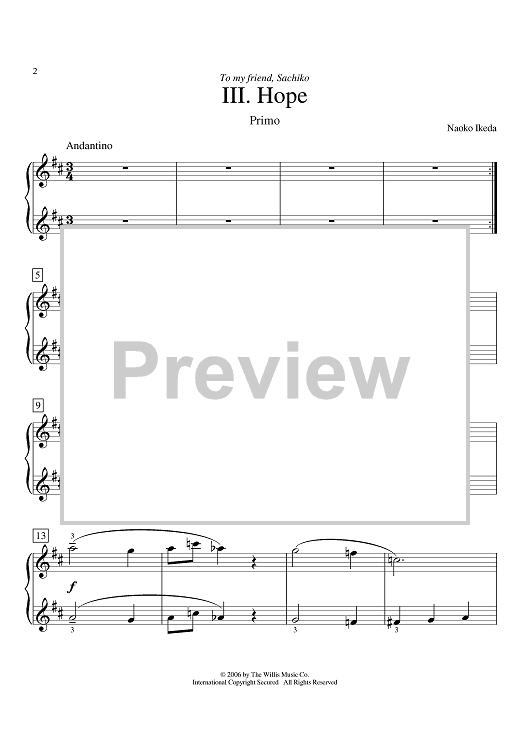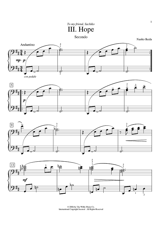 Digital Sheet Music for Hope by Naoko Ikeda scored for 1 Piano, 4 Hands; id:389693