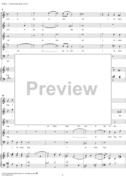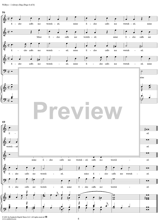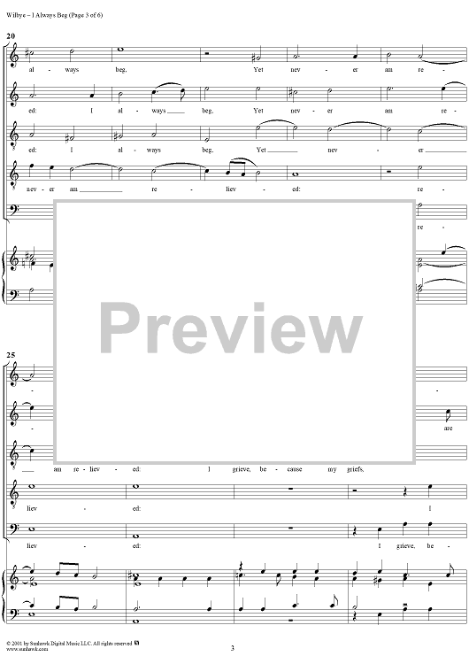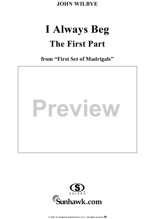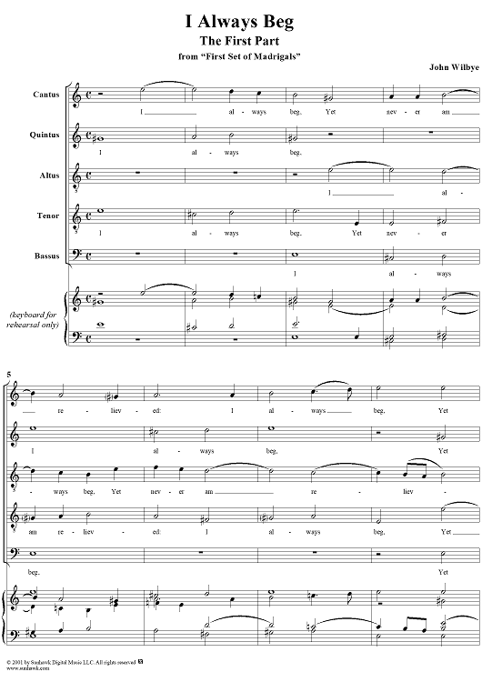 Digital Sheet Music for I Always Beg by John Wilbye scored for Five-part Mixed Chorus; id:168462