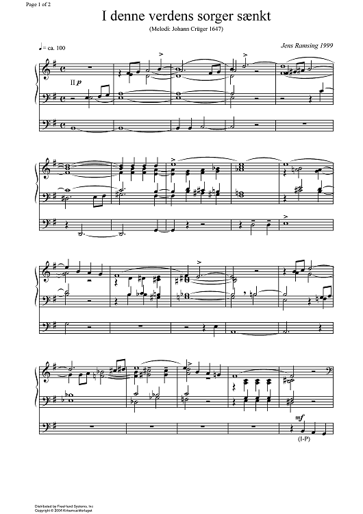 "I denne verdens sorger sænkt (Prelude)" Sheet Music by Jens Ramsing