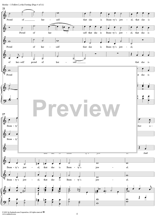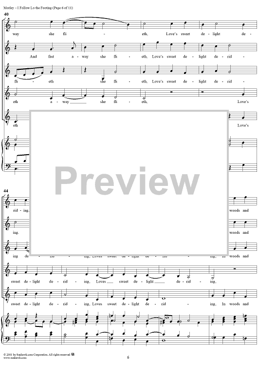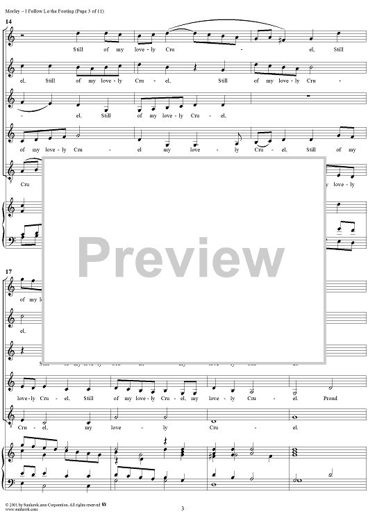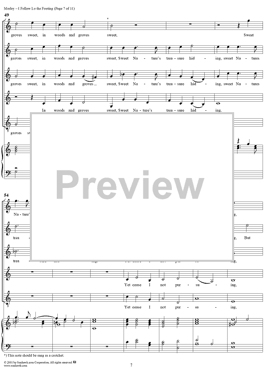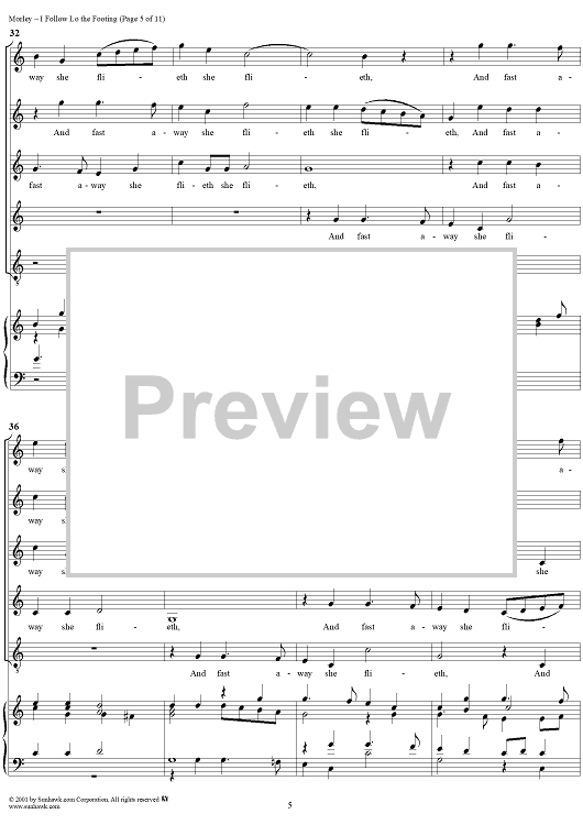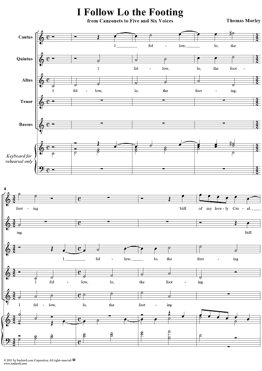 Digital Sheet Music for I Follow Lo the Footing by Thomas Morley scored for Five-part Mixed Chorus; id:260138
