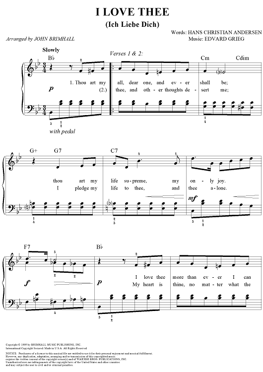 Digital Sheet Music for I Love Thee (Ich Liebe Dich) by Edvard Grieg, Hans Christian Andersen, John Brimhall scored for Easy Piano/Vocal; id:267755