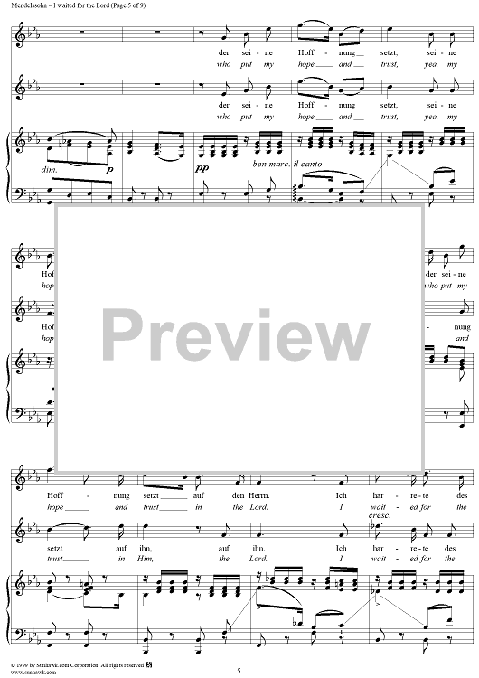 Digital Sheet Music for I Waited for the Lord by Felix Mendelssohn scored for Voice/Piano; id:262847