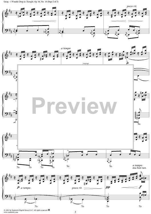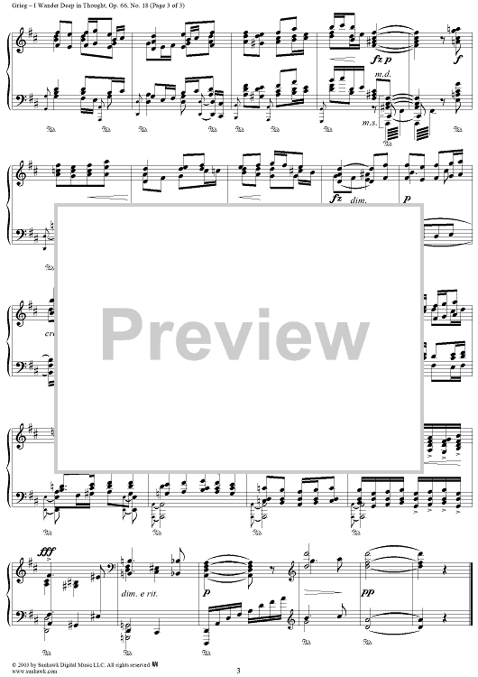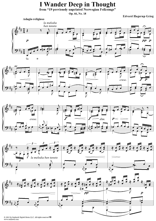 Digital Sheet Music for I Wander Deep in Thought by Edvard Grieg scored for Piano Solo; id:267826