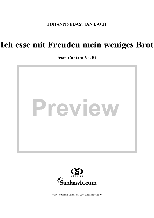 Digital Sheet Music for "Ich esse mit Freuden mein weniges Brot", Aria, No. 3 from Cantata No. 84: "Ich bin vergnügt mit meinem Glücke" - Oboe by Johann Sebastian Bach scored for Soprano, Oboe, Violin and Piano or Organ; id:304044