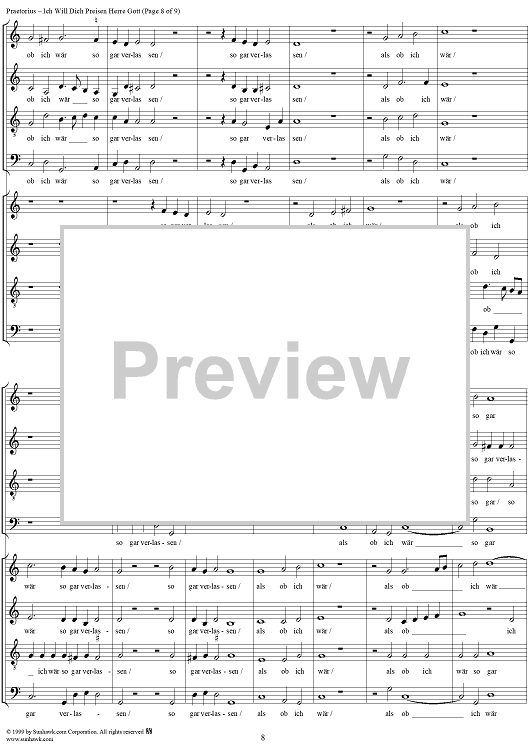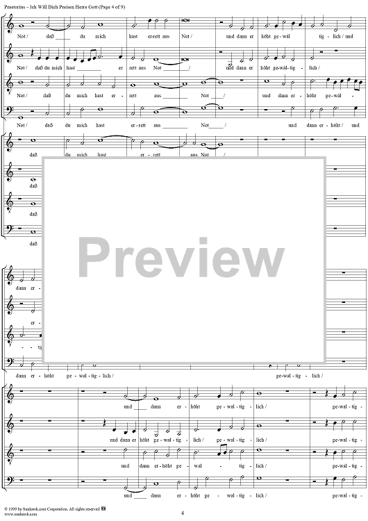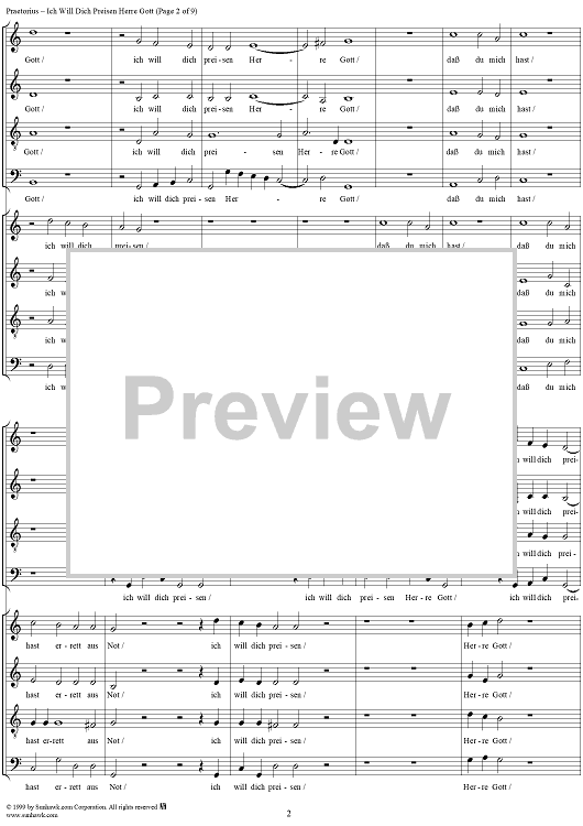 Digital Sheet Music for Ich will dich preisen Herre Gott by Michael Praetorius scored for Mixed Chorus; id:254736