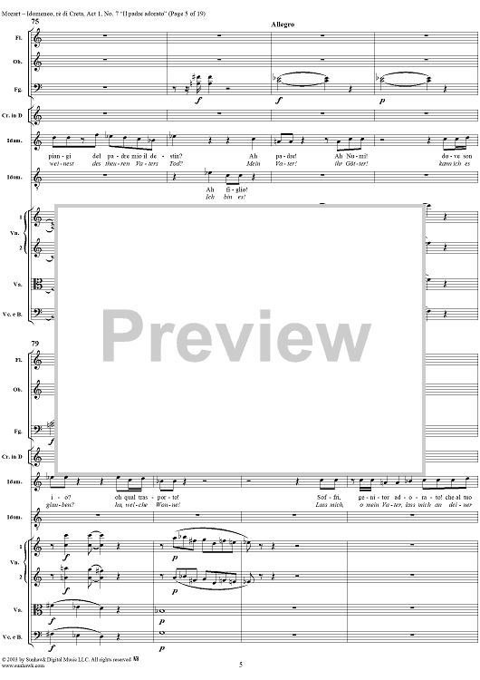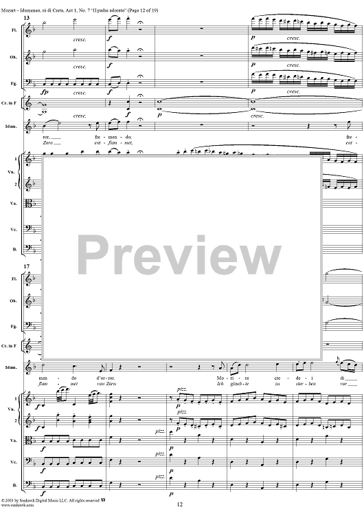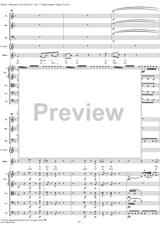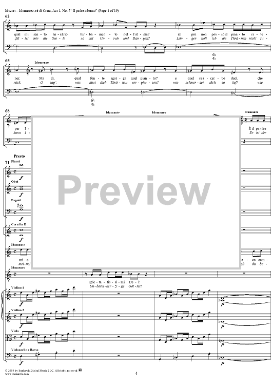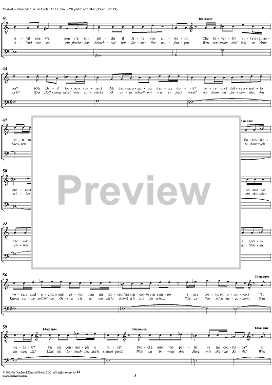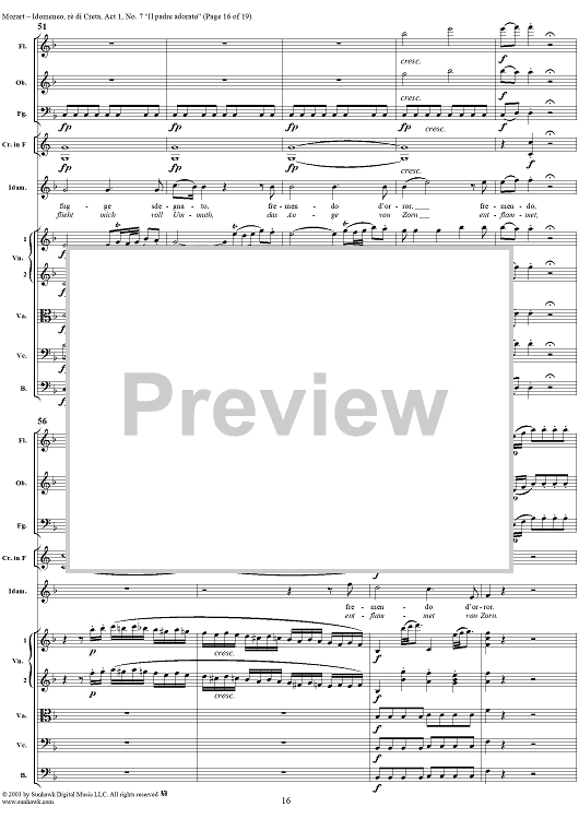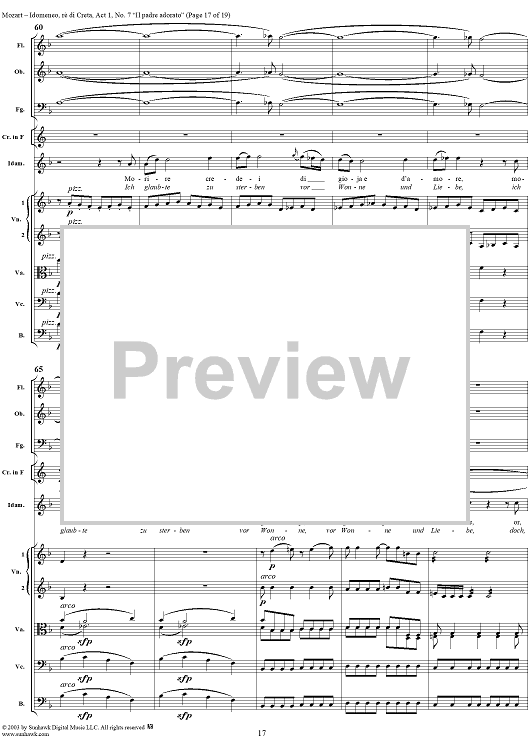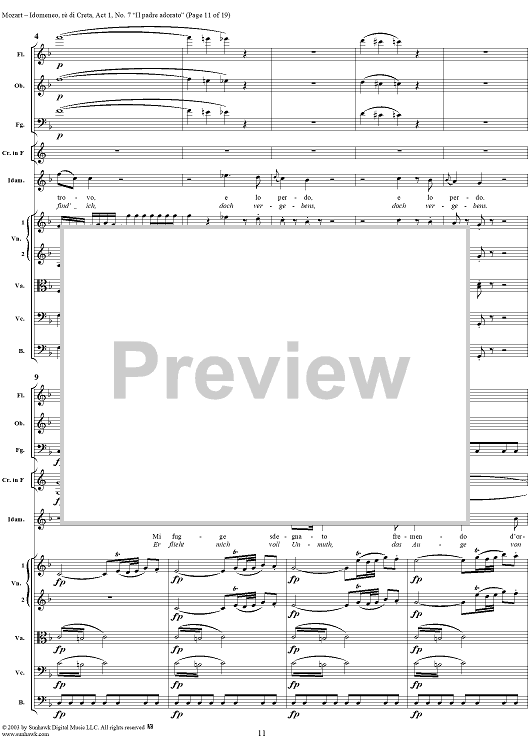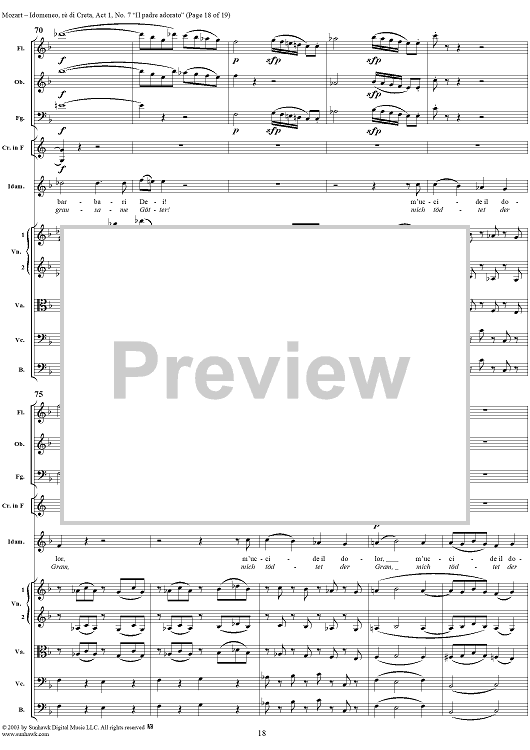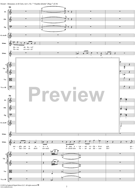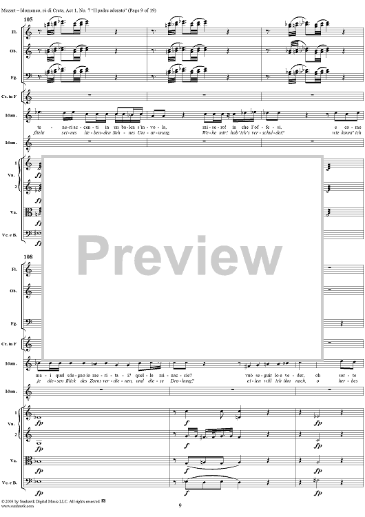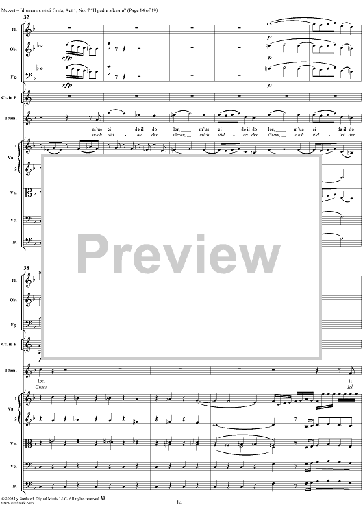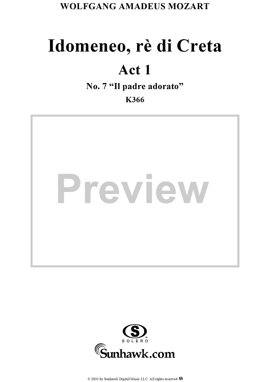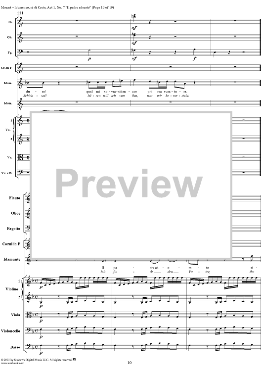 Digital Sheet Music for Idomeneo, rè di Creta, Act 1, No. 7 "Il padre adorato" - Full Score by Wolfgang Amadeus Mozart scored for Voice and Orchestra; id:291851