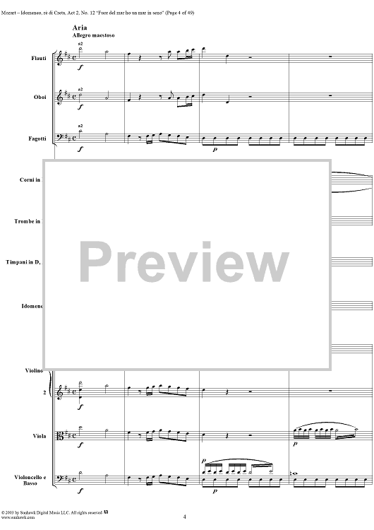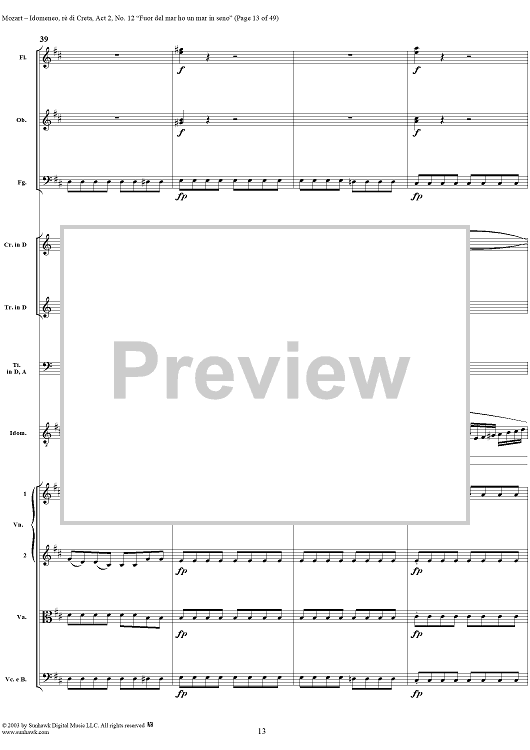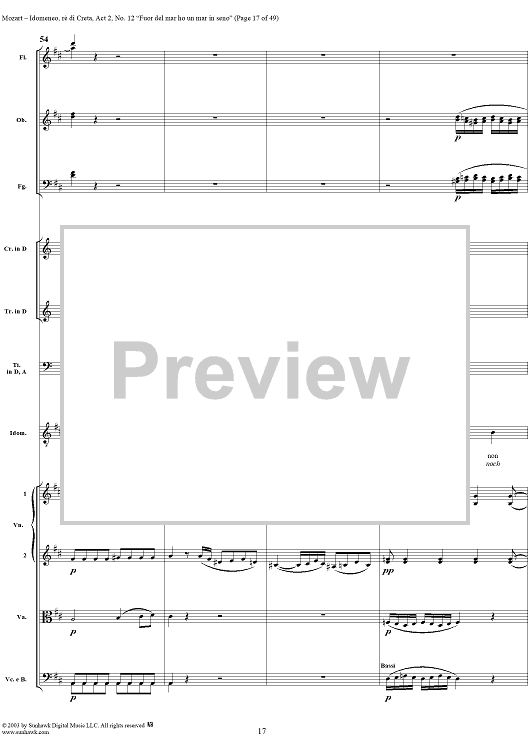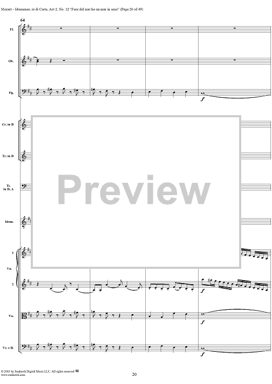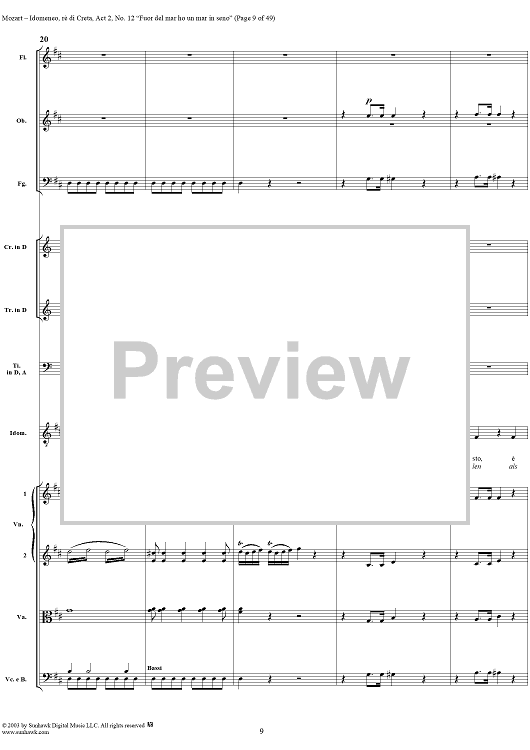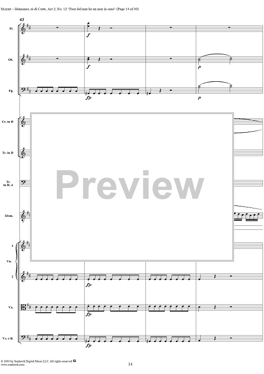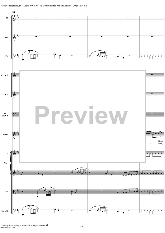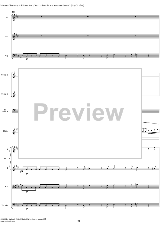 Digital Sheet Music for Idomeneo, rè di Creta, Act 2, No. 12 "Fuor del mar ho un mar in seno" - Full Score by Wolfgang Amadeus Mozart scored for Voice and Orchestra; id:291856