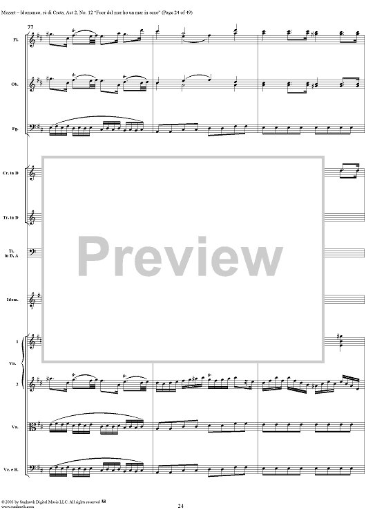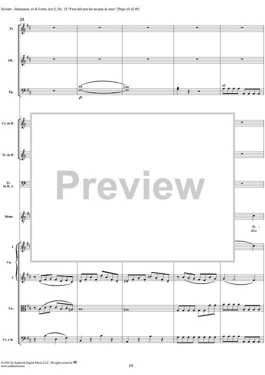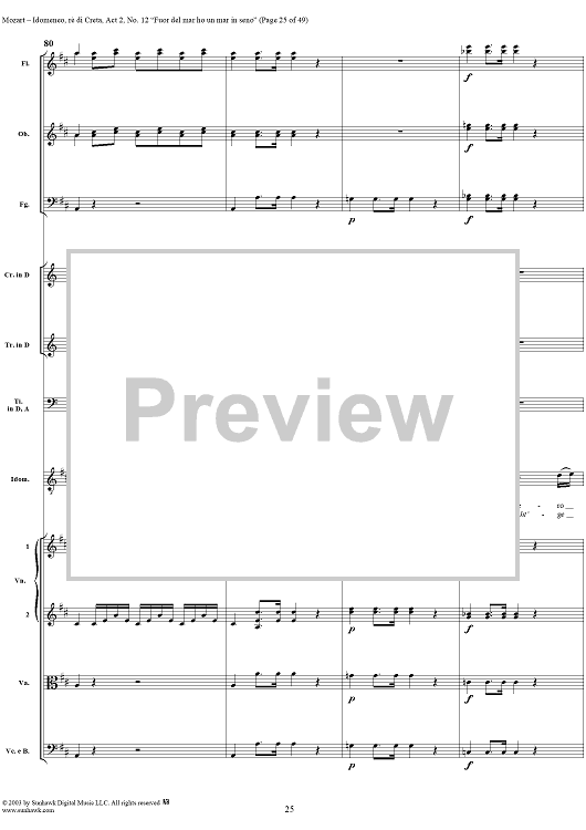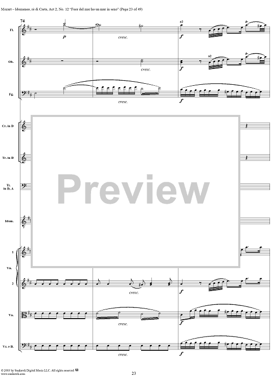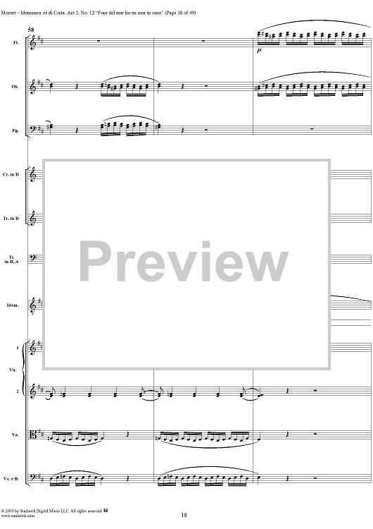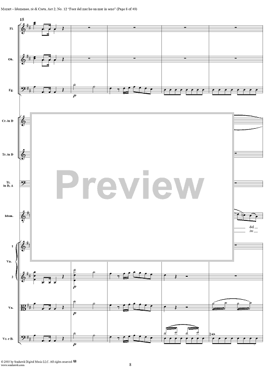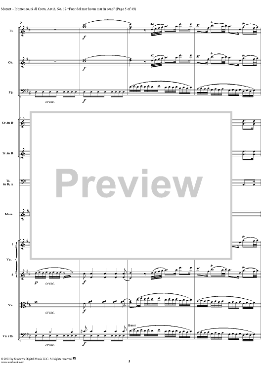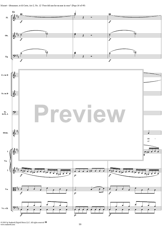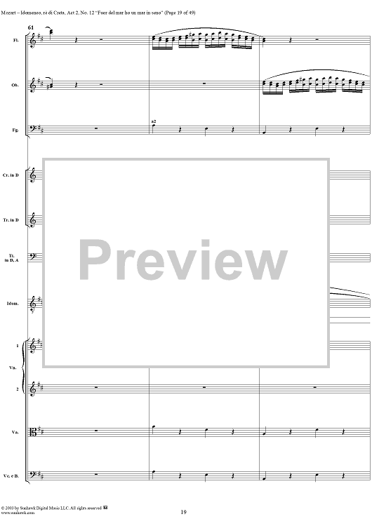 Digital Sheet Music for Idomeneo, rè di Creta, Act 2, No. 12 "Fuor del mar ho un mar in seno" - Full Score by Wolfgang Amadeus Mozart scored for Voice and Orchestra; id:291856