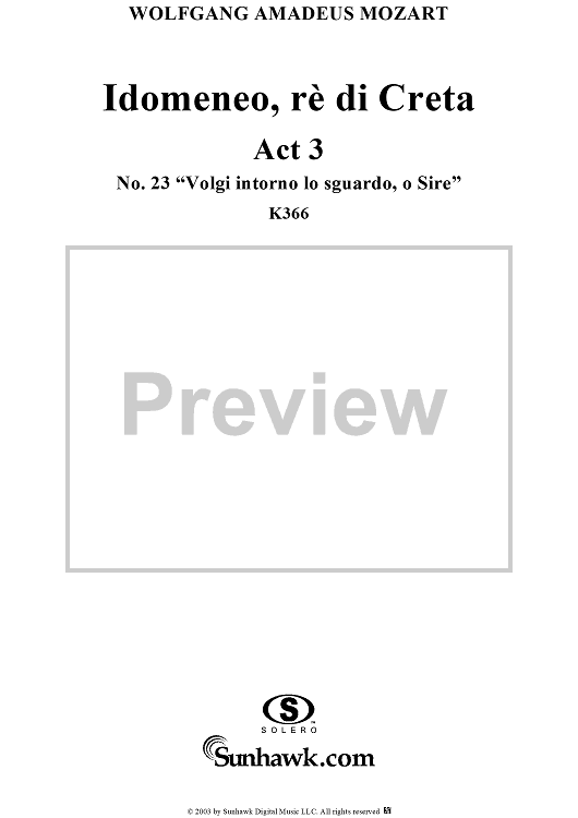 Digital Sheet Music for Idomeneo, rè di Creta, Act 3, No. 23 "Volgi intorno lo sguardo, o Sire" - Full Score by Wolfgang Amadeus Mozart scored for Voice and Orchestra; id:291867