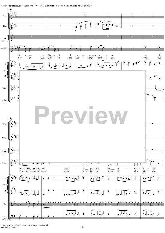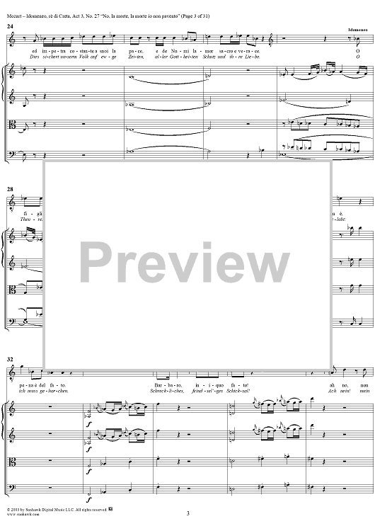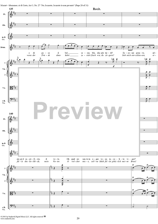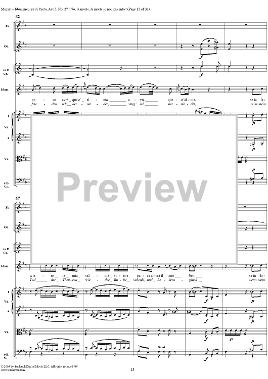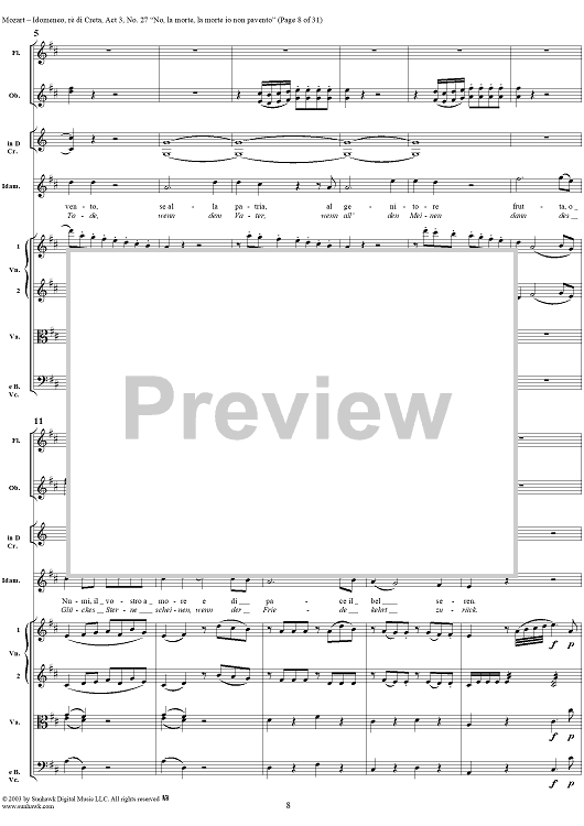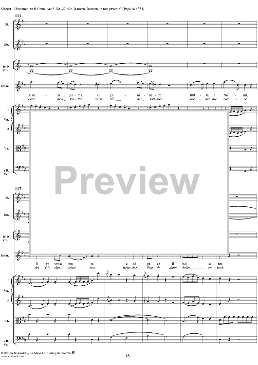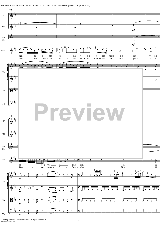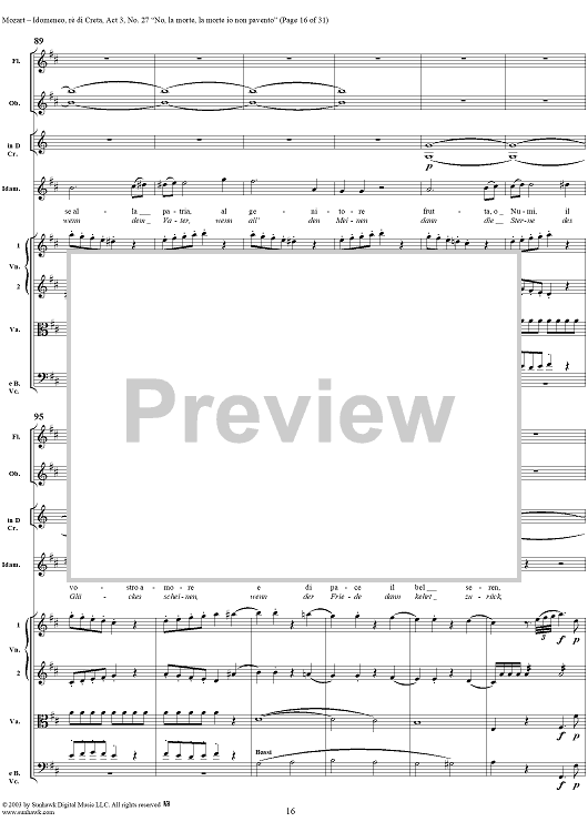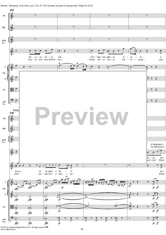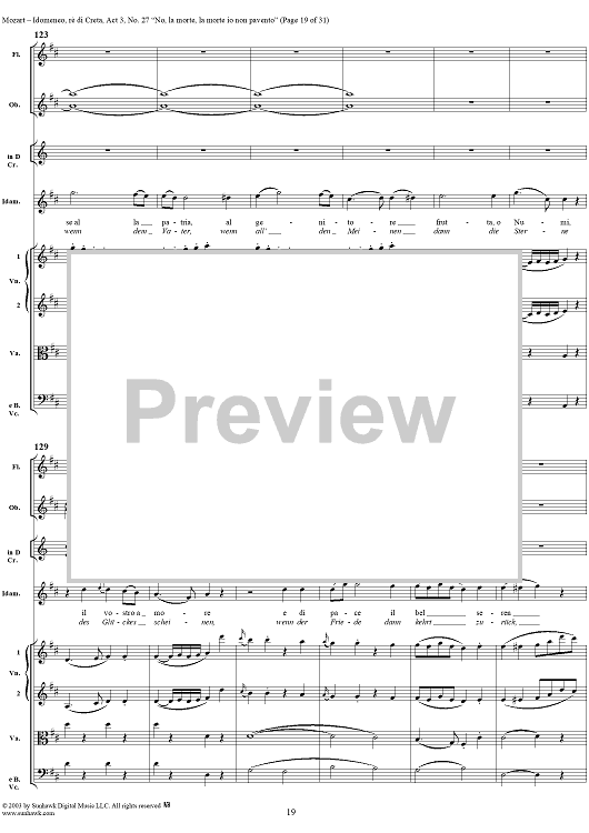 Digital Sheet Music for Idomeneo, rè di Creta, Act 3, No. 27 "No, la morte, la morte io non pavento" - Full Score by Wolfgang Amadeus Mozart scored for Voice and Orchestra; id:291872
