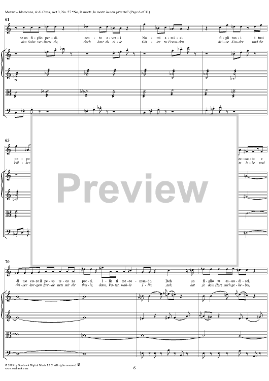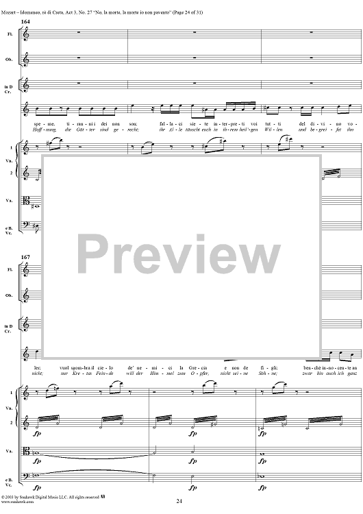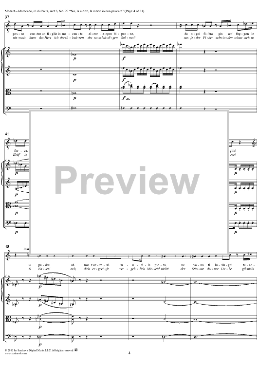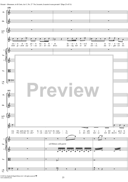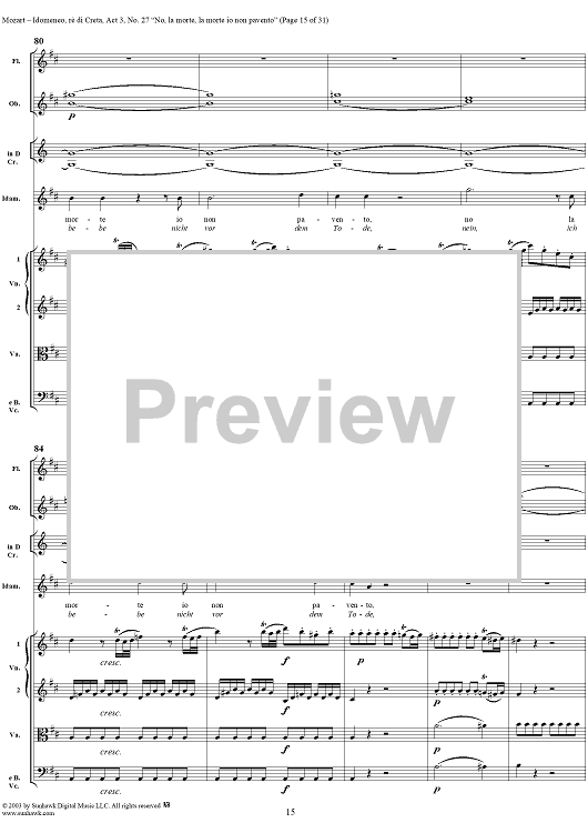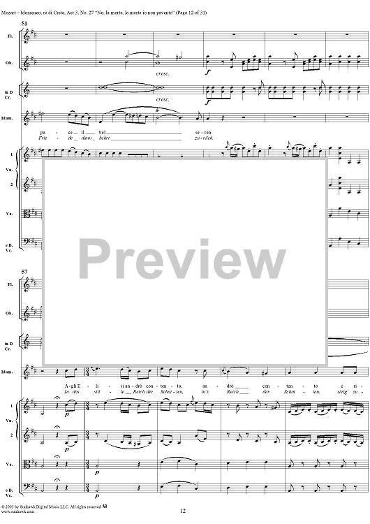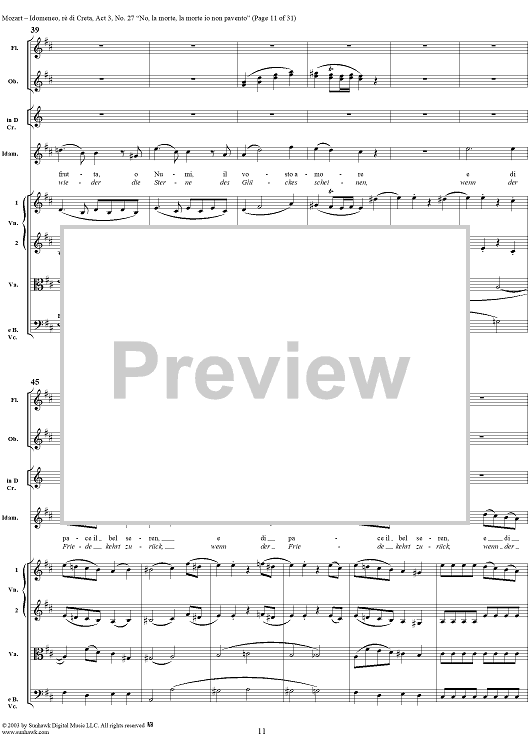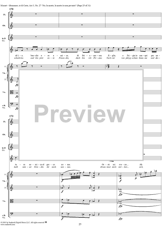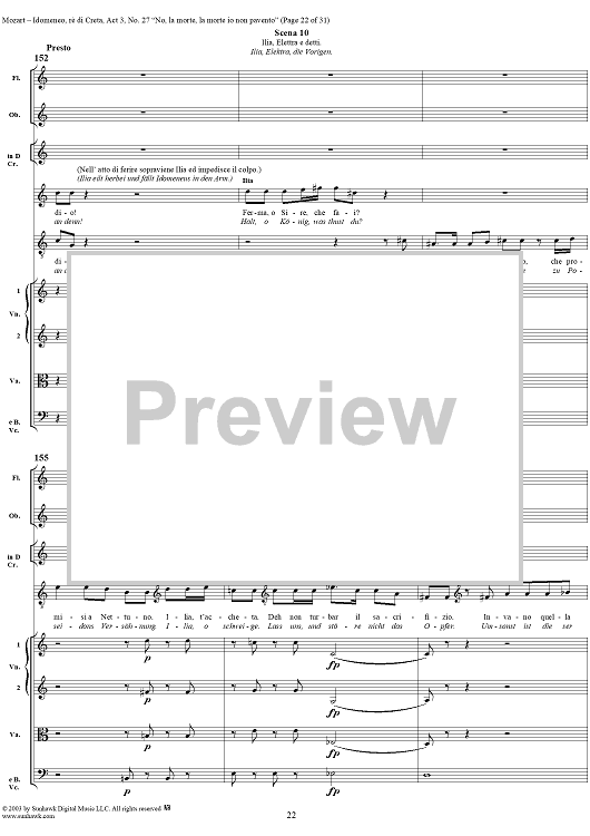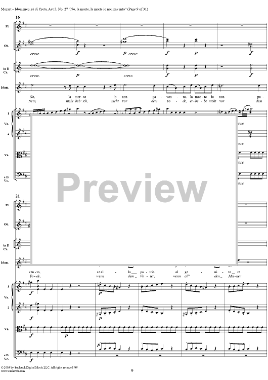 Digital Sheet Music for Idomeneo, rè di Creta, Act 3, No. 27 "No, la morte, la morte io non pavento" - Full Score by Wolfgang Amadeus Mozart scored for Voice and Orchestra; id:291872