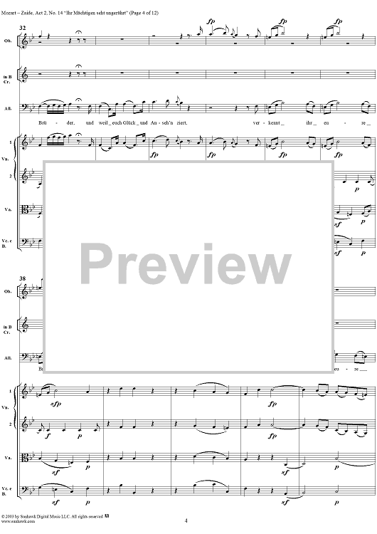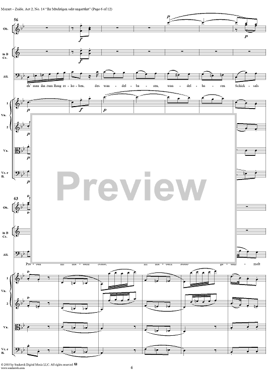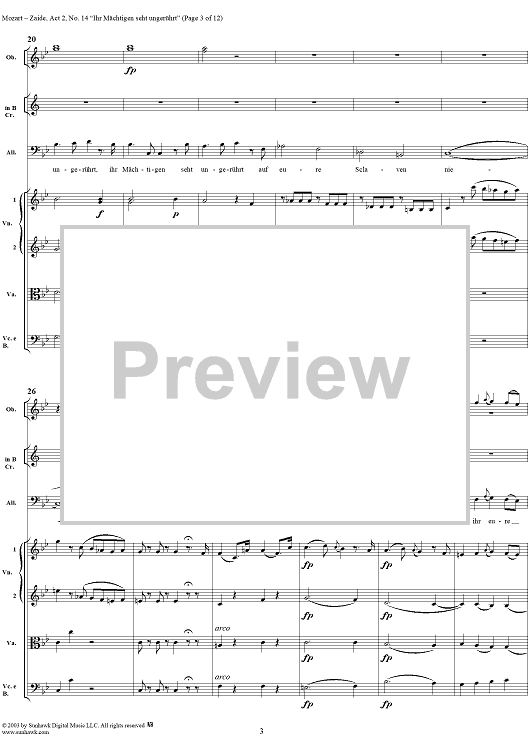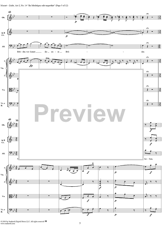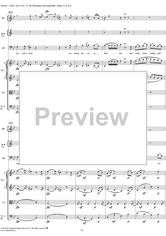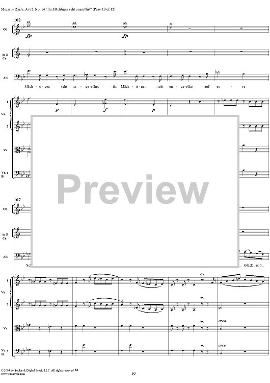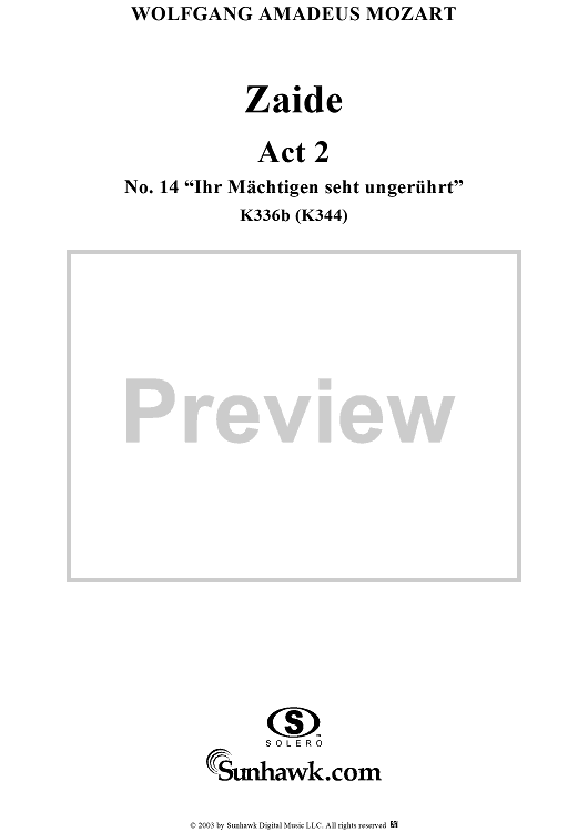 Digital Sheet Music for "Ihr Mächtigen seht ungerührt", No. 14 from "Zaide", Act 2, K336b (K344) - Full Score by Wolfgang Amadeus Mozart scored for Voice and Orchestra; id:291682
