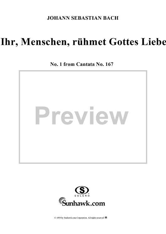 "Ihr, Menschen, rühmet Gottes Liebe - No 1 from Cantata No. 167 - BWV167" Sheet Music by Johann Sebastian Bach