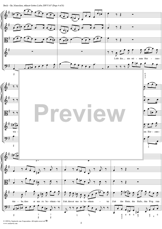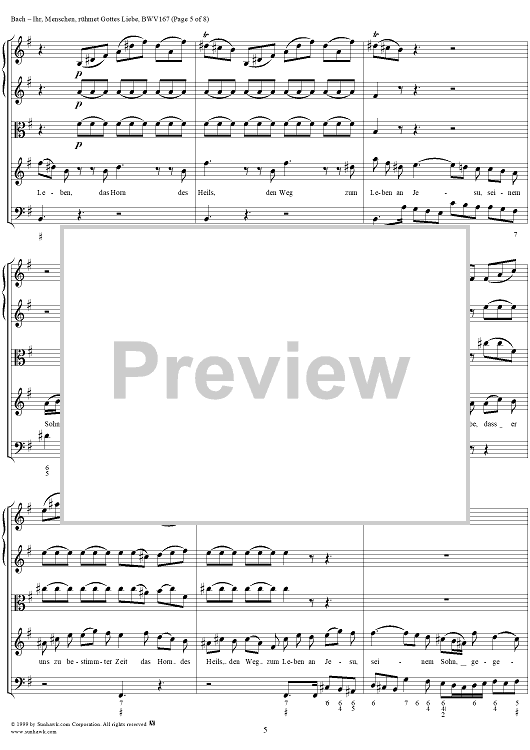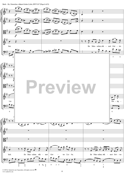 Digital Sheet Music for Ihr, Menschen, rühmet Gottes Liebe - No 1 from Cantata No. 167 - BWV167 by Johann Sebastian Bach scored for Assorted Instruments; id:255252