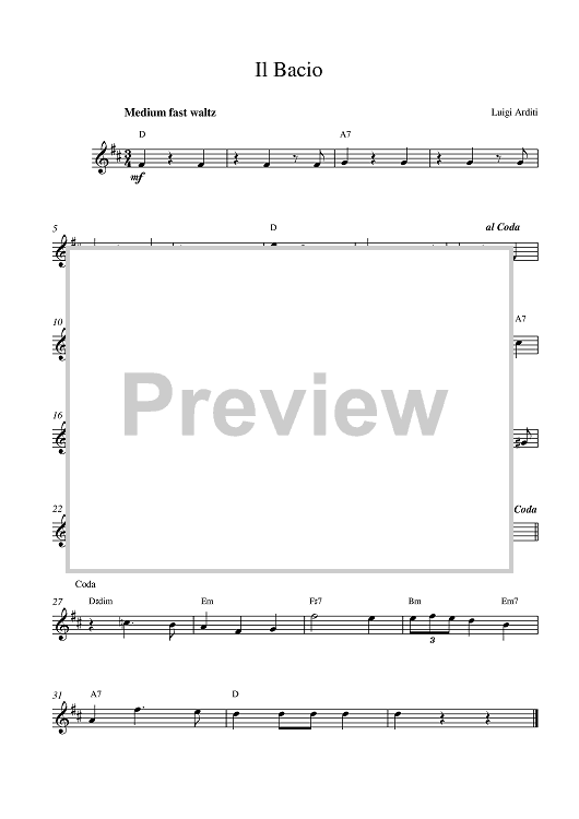 Digital Sheet Music for Il Bacio (The Kiss) by Luigi Arditi scored for Lead Sheet; id:385825