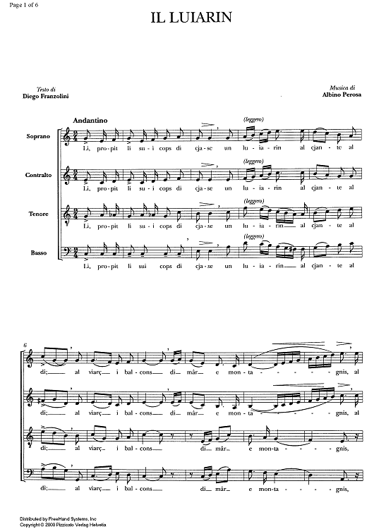 Digital Sheet Music for Il luiarin by , Albino Perosa scored for SATB Choir; id:334494