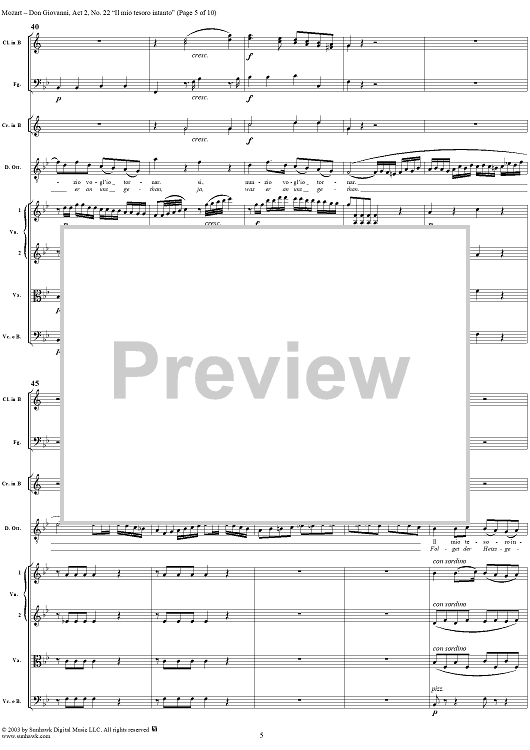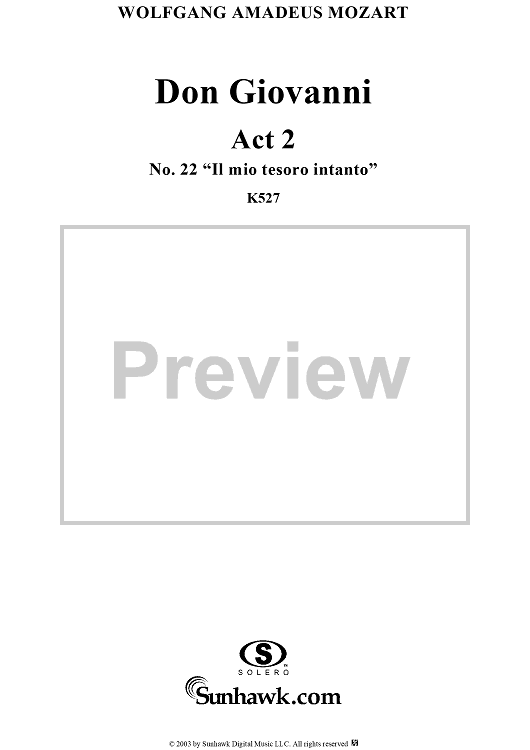Digital Sheet Music for "Il mio tesoro intanto", No. 22 from "Don Giovanni", Act 2, K527 - Full Score by Wolfgang Amadeus Mozart scored for Voice and Orchestra; id:291932