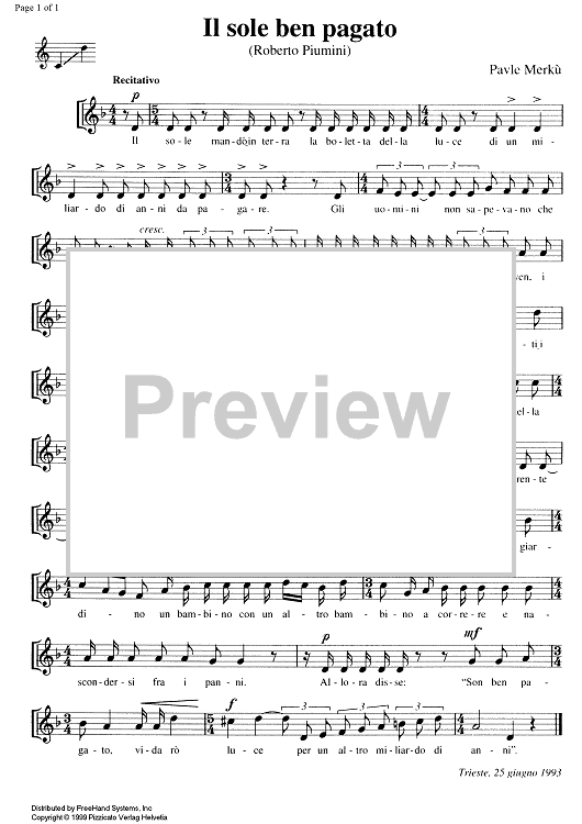 "Il sole ben pagato" Sheet Music by Pavle Merkù
