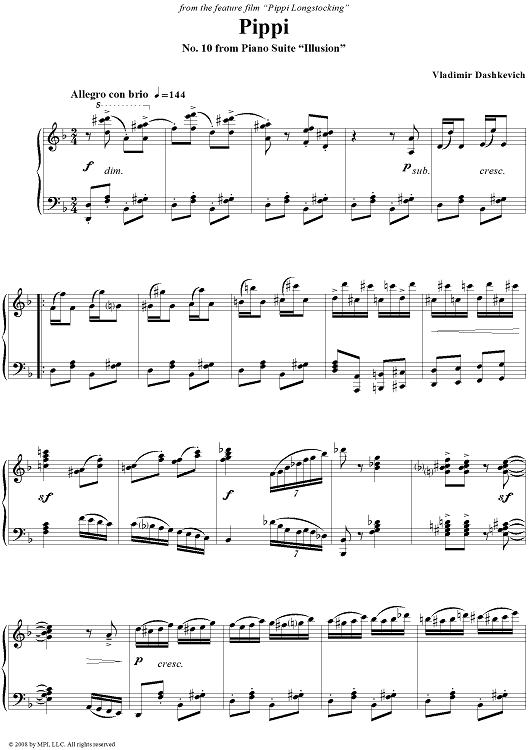 Digital Sheet Music for Illusion. 10. Pippi by , Vladimir Dashkevich scored for Piano Solo; id:403519