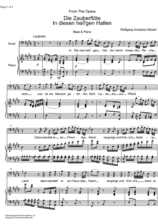 Digital Sheet Music for In diesen heil'gen Hallen from Die Zauberflöte KV620 by Wolfgang Amadeus Mozart, SMN Archive Collection scored for Bass/Piano; id:323890