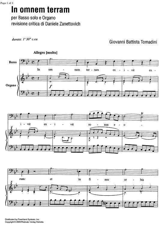 Digital Sheet Music for In omnem terram by , Giovanni Battista Tomadini scored for Bass/Organ; id:349660