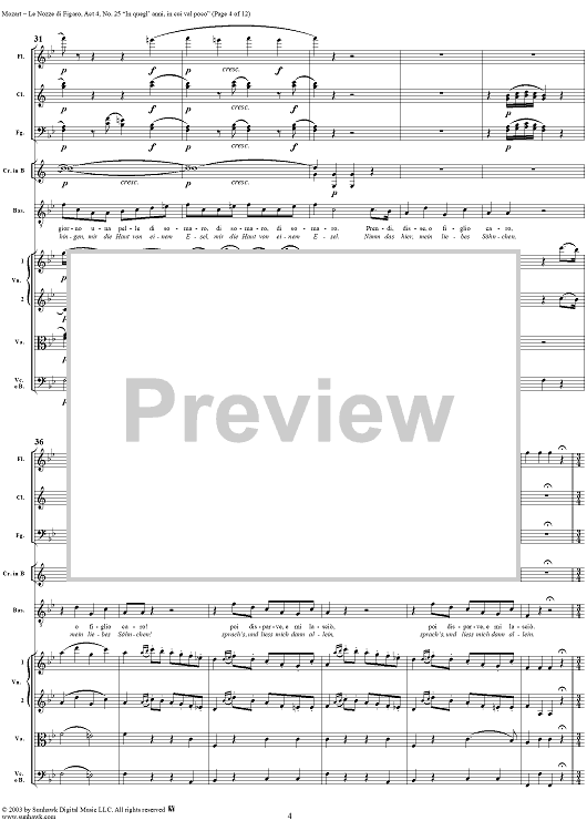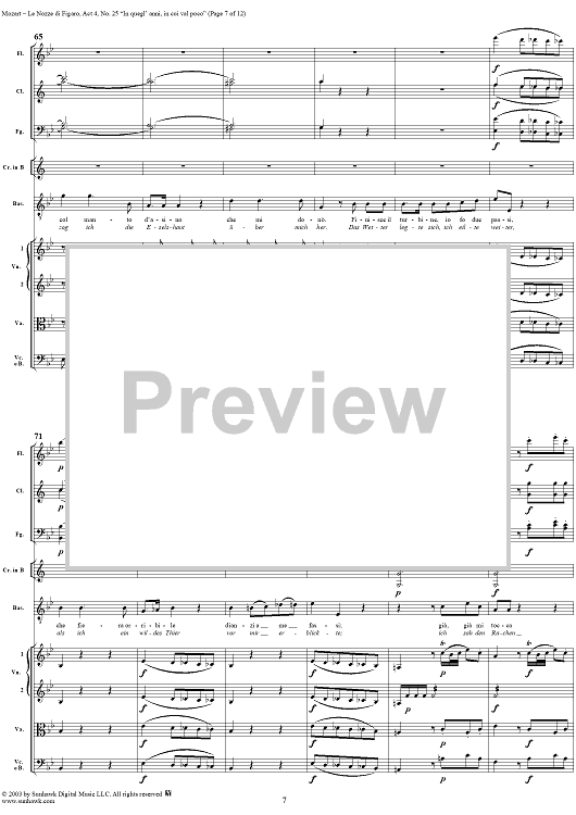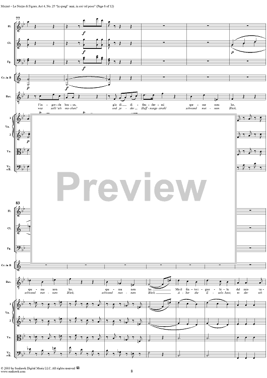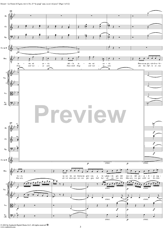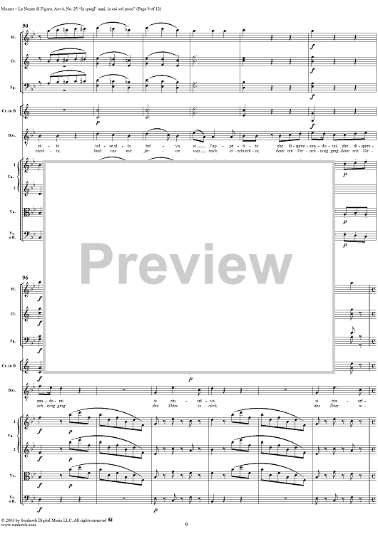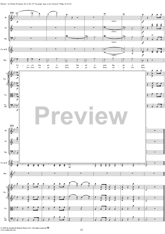 Digital Sheet Music for "In quegli anni, in cui val poco", No. 25 from "Le Nozze di Figaro", Act 4, K492 - Full Score by Wolfgang Amadeus Mozart scored for Voice and Orchestra; id:292222