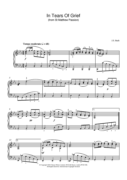 Digital Sheet Music for In Tears Of Grief (from St Matthew Passion) by Johann Sebastian Bach scored for Piano; id:378876