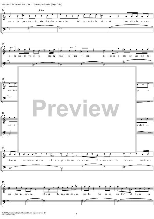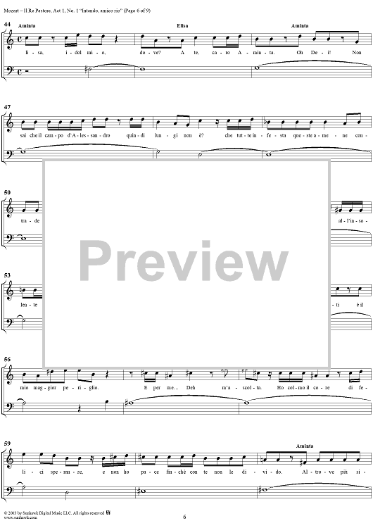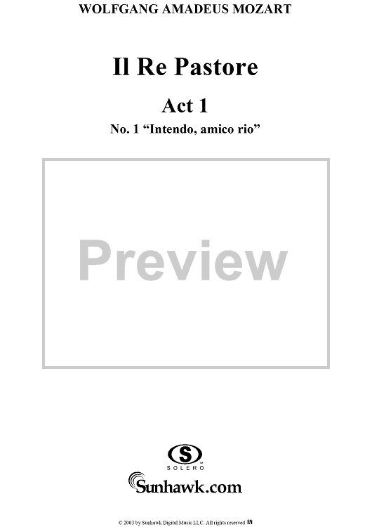 "Intendo, amico rio, No. 1 from "Il Re Pastore", Act 1 (K208) - Full Score" Sheet Music by Wolfgang Amadeus Mozart
