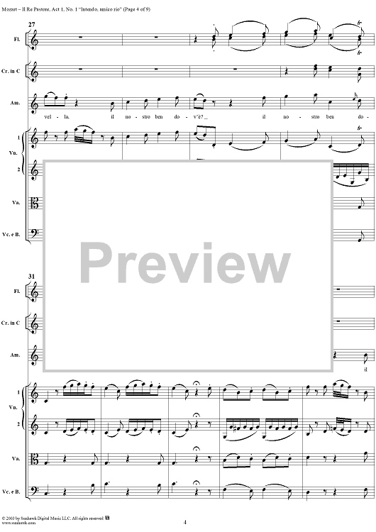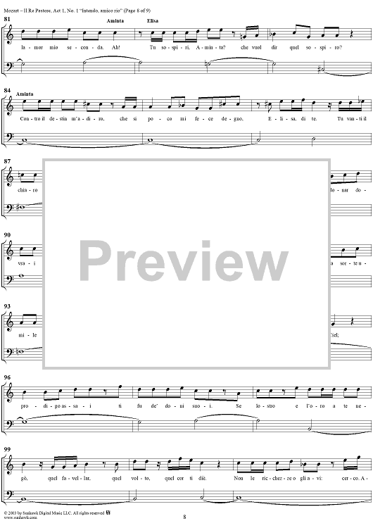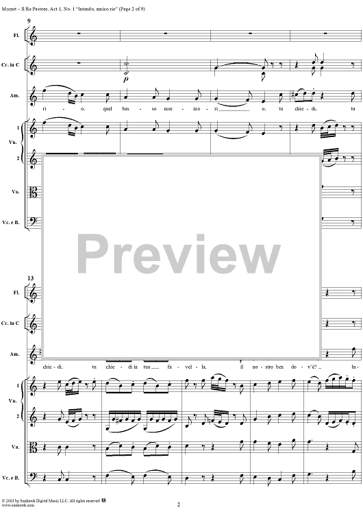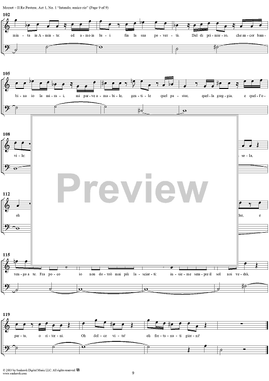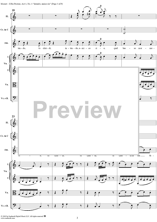Digital Sheet Music for Intendo, amico rio, No. 1 from "Il Re Pastore", Act 1 (K208) - Full Score by Wolfgang Amadeus Mozart scored for Voice and Orchestra; id:291436