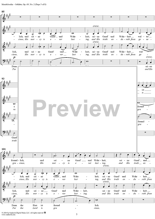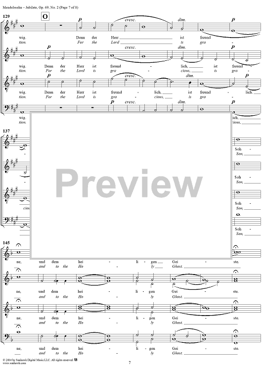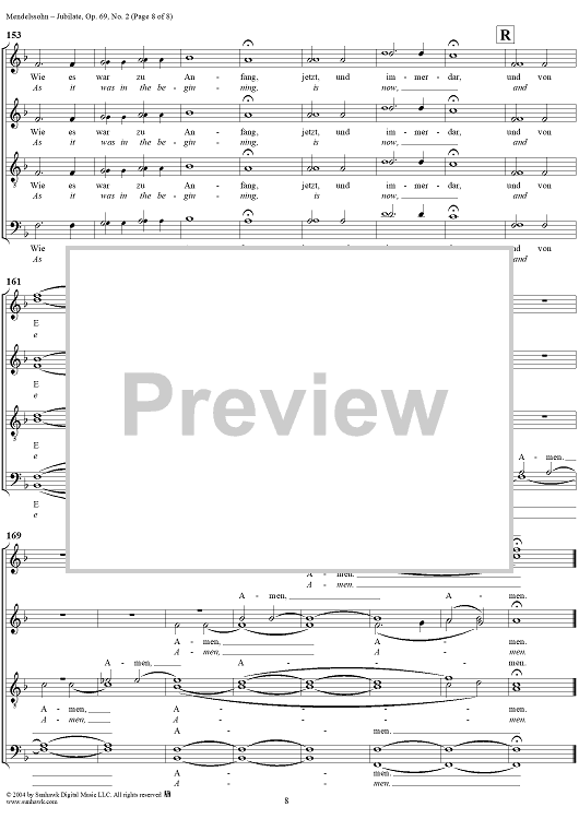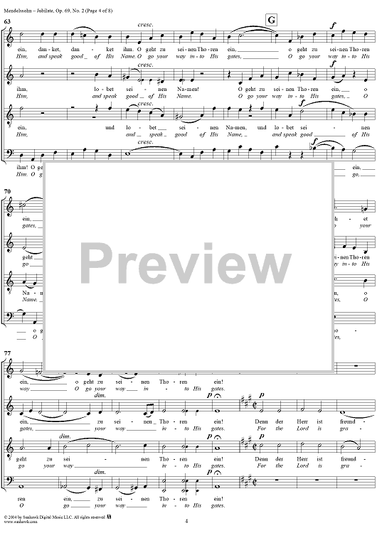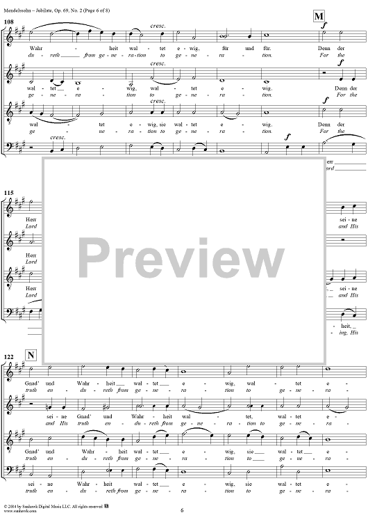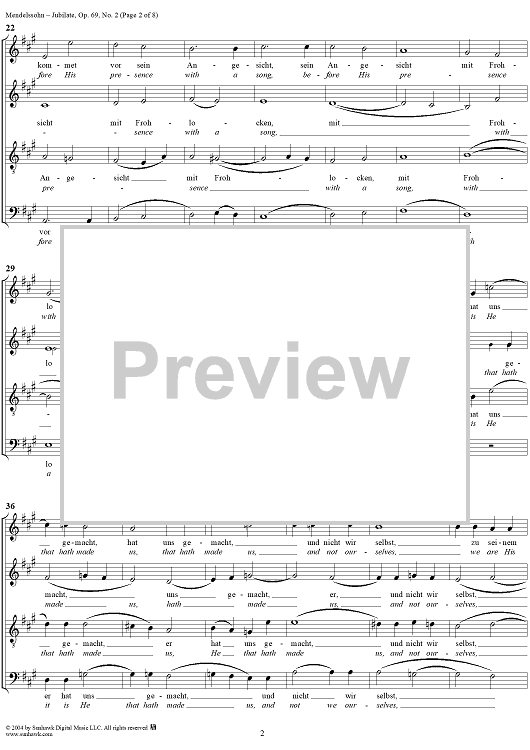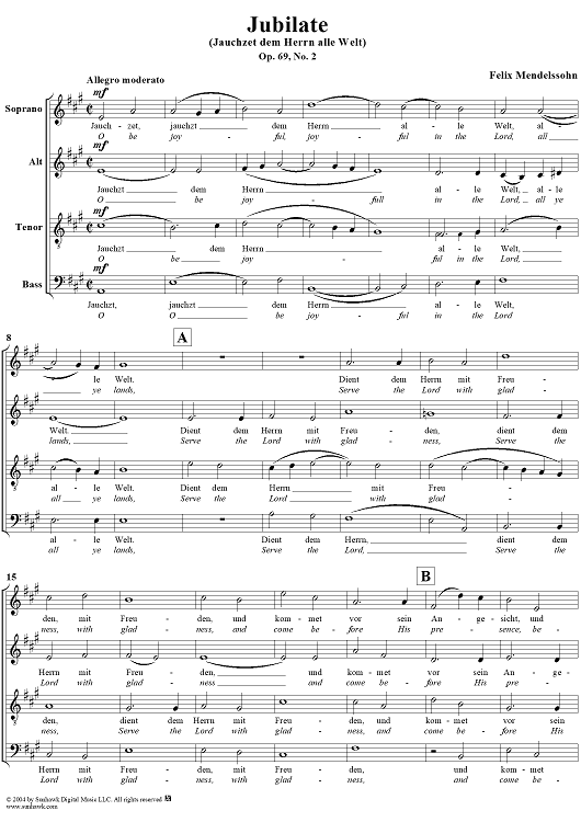 Digital Sheet Music for Jauchzet dem Herrn alle Welt, Op. 69, No. 2 by Felix Mendelssohn scored for Four-part Mixed Chorus; id:303694