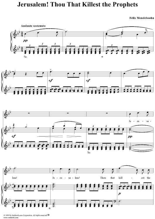 Digital Sheet Music for Jerusalem! Thou That Killest the Prophets by Felix Mendelssohn scored for Voice/Piano; id:263047