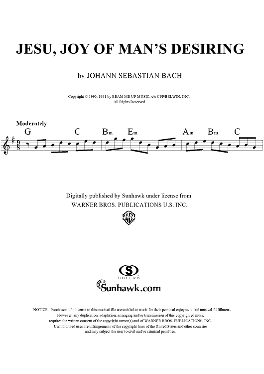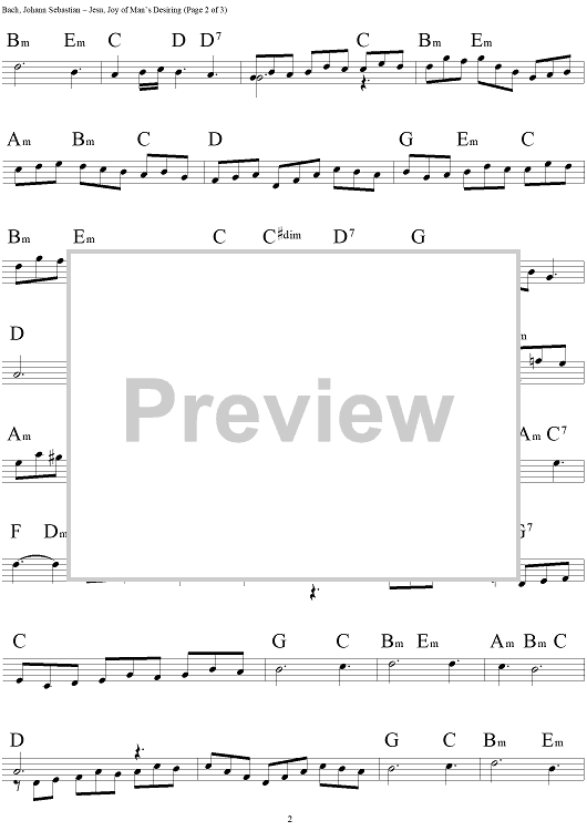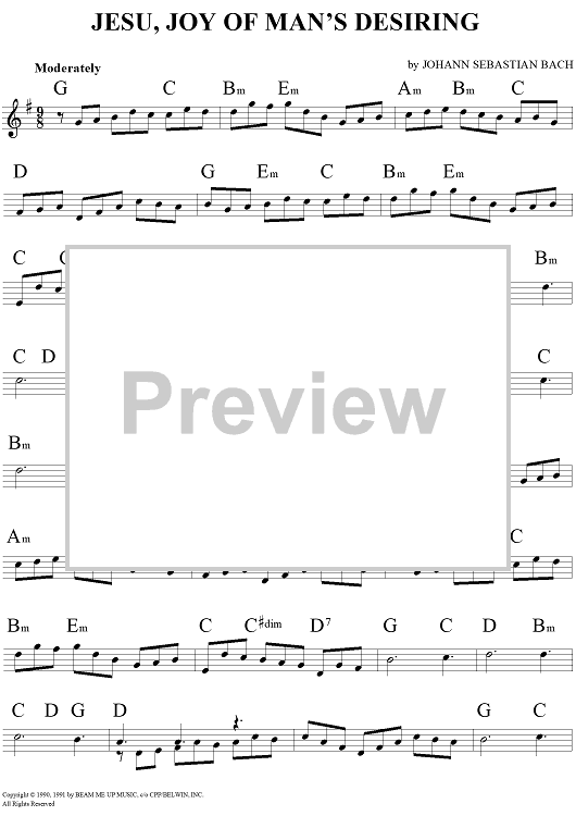 Digital Sheet Music for Jesu, Joy of Man's Desiring by Johann Sebastian Bach scored for Lead Sheet; id:116500