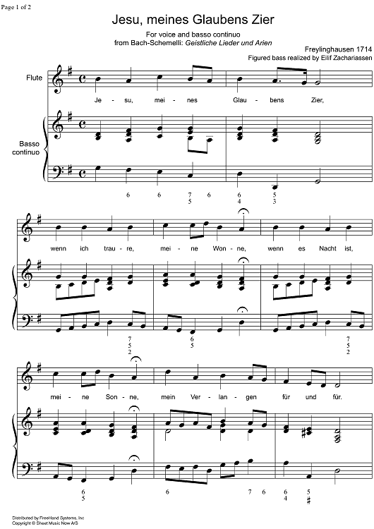Digital Sheet Music for Jesu, meines Glaubens Zier by Johann Anastasius Freylinghausen, Eilif Zachariassen scored for Voice/Continuo; id:325899