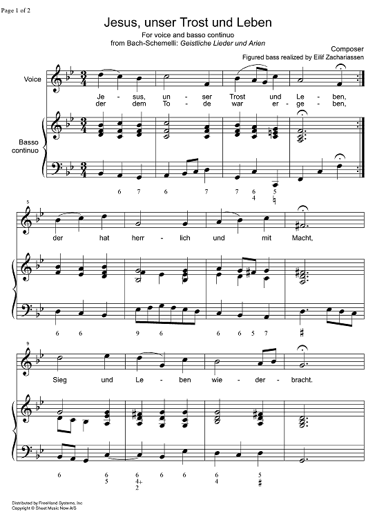 Digital Sheet Music for Jesus, unser Trost und Leben by Unknown Writer, Eilif Zachariassen scored for Voice/Continuo; id:325941